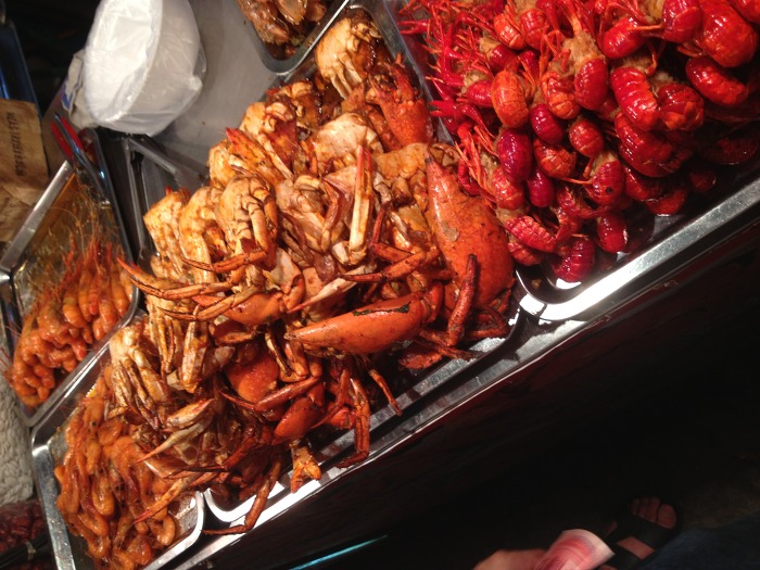 게와 대하, 딱새우, 롱샤가 가지런히 있습니다.