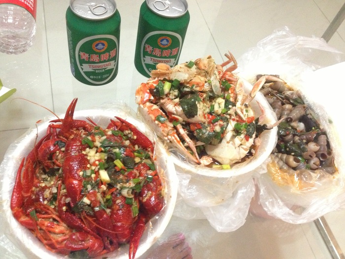 롱샤와 게, 작은 소라를 싸왔습니다.