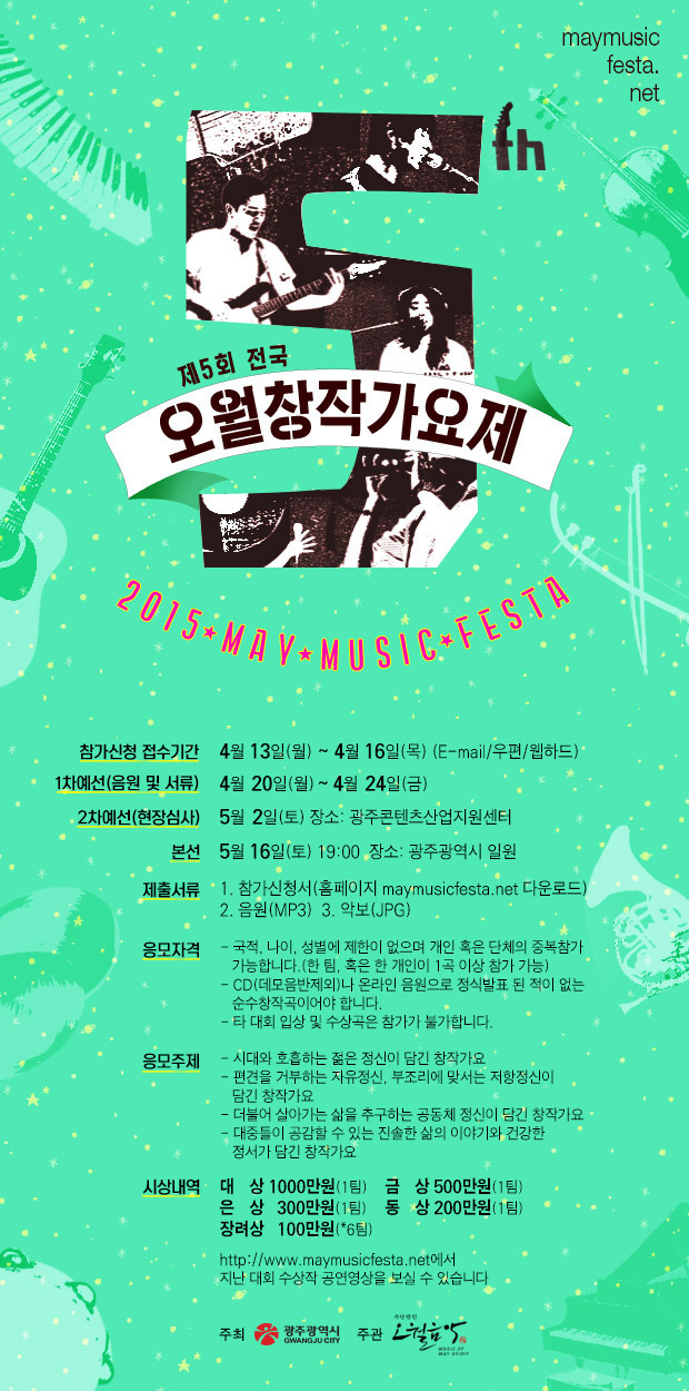 제5회 전국 오월창작가요제가 열립니다.(창작지원금 총 2600만원)