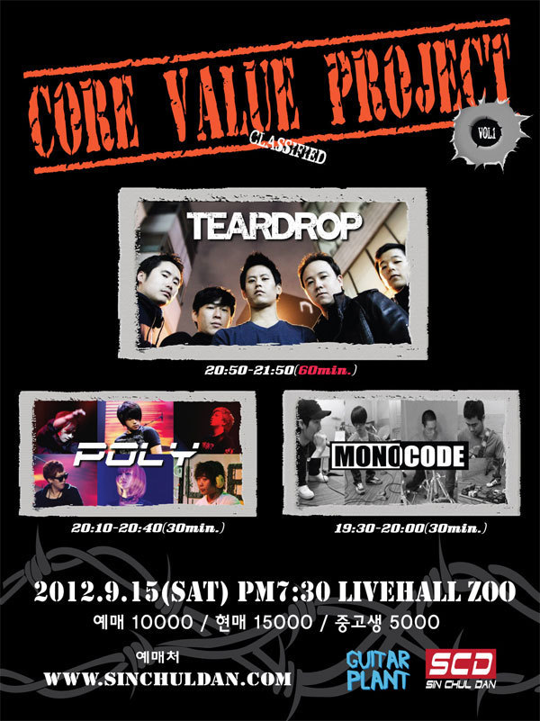 홍대라이브클럽ZOO 9월 셋째주 공연일정 ( Tear drop, High quality face, Mono code, 11시11분 외 )