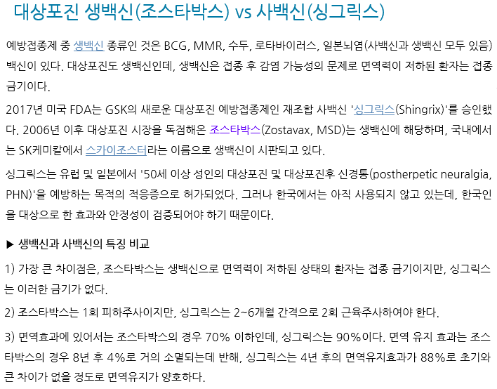 작성자생명력 작성시간 19.07.15 사백신..'싱그릭스'..