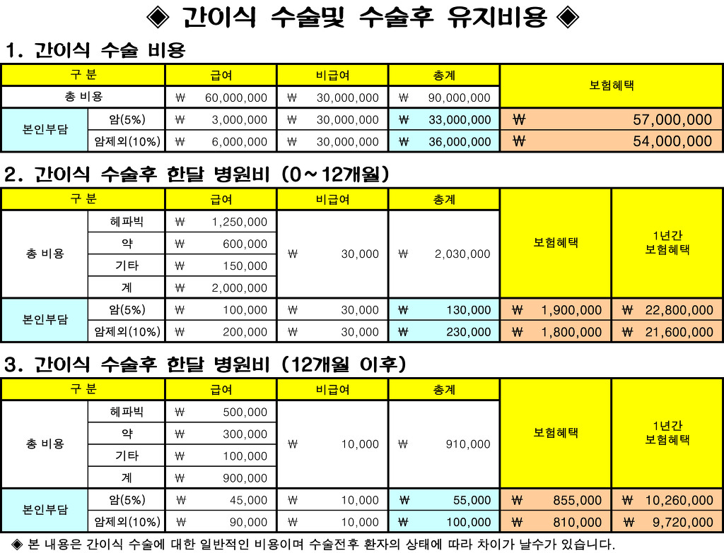 많은분들이 간이식 비용과 수술후 병원비에 대해 궁금해 하셔서