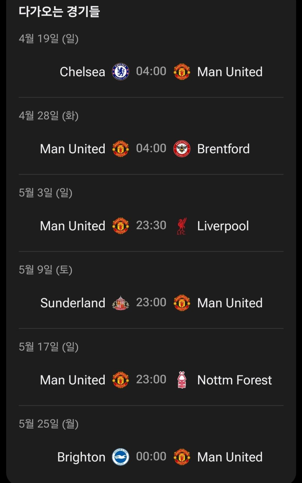 작성자얄리얄리얄랴성얄라리알리송 작성시간 26.04.14 챔피언스리그 진출 굳힐려면 맨유가 첼시 잡아주는 게 낫겠다