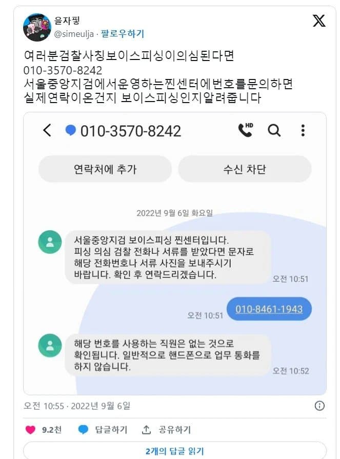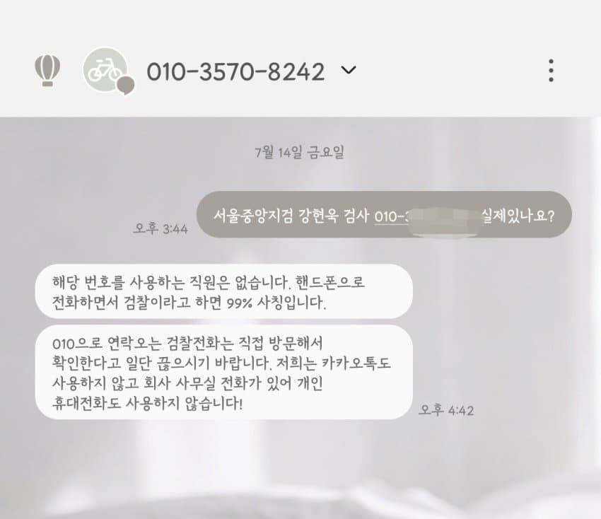 [스크랩] [컨텐츠]검찰사칭 보이스피싱 문의용 010-3570-8242 작성자Joker|작성시간23.11.05|조회수1,016 목록 댓글 1 글자크기 작게가 글자크기 크게가 다음검색 스크랩 원문 : 도탁스 (DOTAX) 현재 게시글 추가 기능 열기 북마크 공유하기 신고 센터로 신고 댓글 댓글 1 댓글쓰기 답글쓰기 댓글 리스트 작성자vivable | 작성시간 23.11.05 이왜진...? 댓글 전체보기