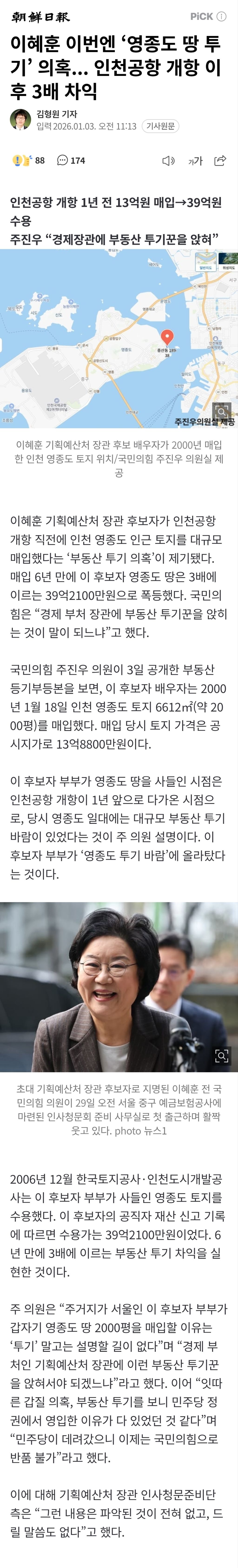 이혜훈 영종도땅 투기의혹을 주진우가 얘기함ㅋㅋㅋ 작성자남자라서 와쑤다.|작성시간26.01.03|조회수526 목록 댓글 4 글자크기 작게가 글자크기 크게가 https://n.news.naver.com/article/023/0003950716?sid=100이혜훈 이번엔 ‘영종도 땅 투기’ 의혹... 인천공항 개항 이후 3배 차익인천공항 개항 1년 전 13억원 매입→39억원 수용 주진우 “경제장관에 부동산 투기꾼을 앉혀” 이혜훈 기획예산처 장관 후보자가 인천공항 개항 직전에 인천 영종도 인근 토지를 대규모 매입했n.news.naver.com해산해야겠지? 간염수괴야?아님 너가 해라 청문회ㅋㅋㅋ 다음검색 현재 게시글 추가 기능 열기 북마크 공유하기 신고 센터로 신고 댓글 댓글 4 댓글쓰기 답글쓰기 댓글 리스트 작성자홍합킬러[좌회전파] | 작성시간 26.01.03 민주당 가기만 기다렸구나ㅎㅎ사실이면 쉴드가 불가하겠네알아서 물러나야지 작성자깽맨쓰(단발파) | 작성시간 26.01.03 진작부터 말했듯 이아줌마는 아니라니까는 작성자용비 | 작성시간 26.01.05 2000년, 2006년에 어느 당이었지? 보수당 아니었니? 보수당 스스로 자기반성부터해야 맞겠지? 근데 양심이 없으면 안 하겠지? 작성자좀비75[홍익인간파] | 작성시간 26.01.07 기다렸다는 듯이.... ㅋㅋㅋㅋ 댓글 전체보기