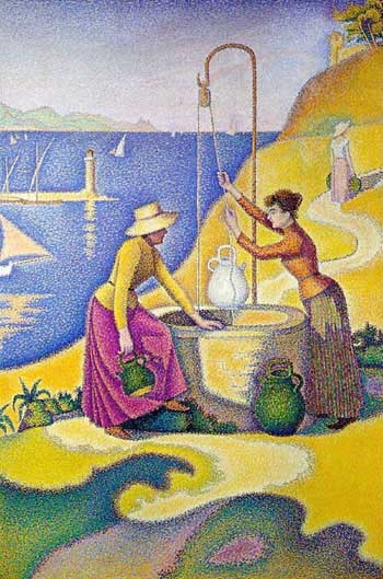 조르주 쇠라가 신인상주의의 창시자라면, 시냑은 쇠라의 절친한 친구이자 지지자로서 신인상주의를 주도해 갔다. 1893년 제 9회 앙데팡당 전시회에 <우물가의 프로방스 여인들, 희미한 빛 속의 게시판을 위한 무대 장치>라는 제목으로 출품됐던 이 작품은, 시냑의 분할 묘법 이론을 가장 잘 표현한 작품 중 하나이다.
