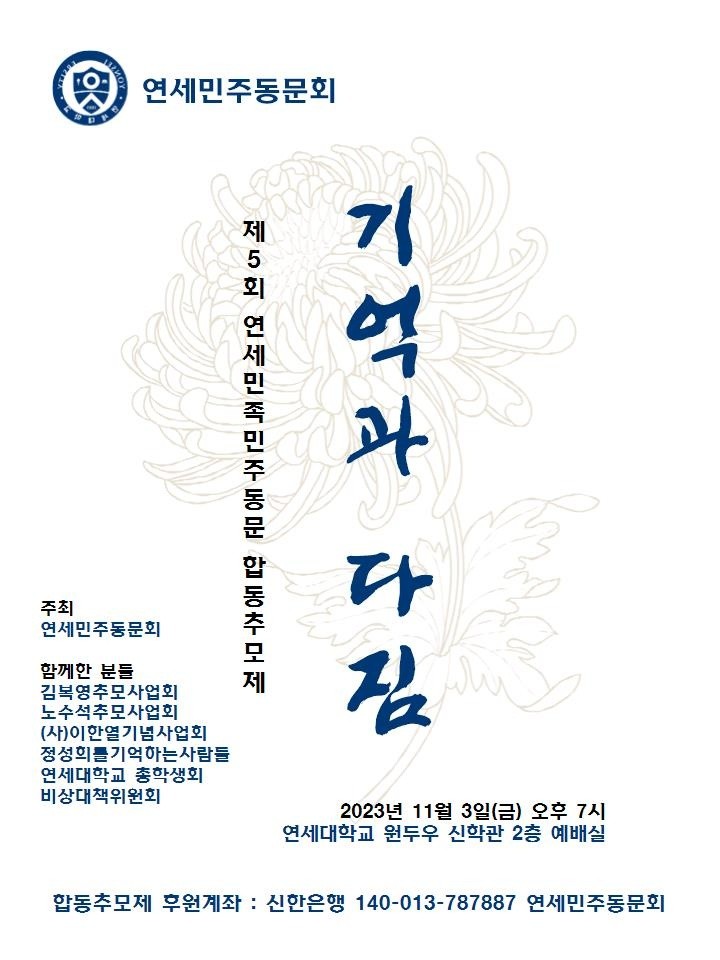 연세대 민주열사 추모의 대상자가 되셨습니다. 작성자카페지기|작성시간23.10.30|조회수74 목록 댓글 0 글자크기 작게가 글자크기 크게가 다음검색 현재 게시글 추가 기능 열기 북마크 공유하기 신고 센터로 신고 댓글 댓글 0 댓글쓰기 답글쓰기 댓글 리스트