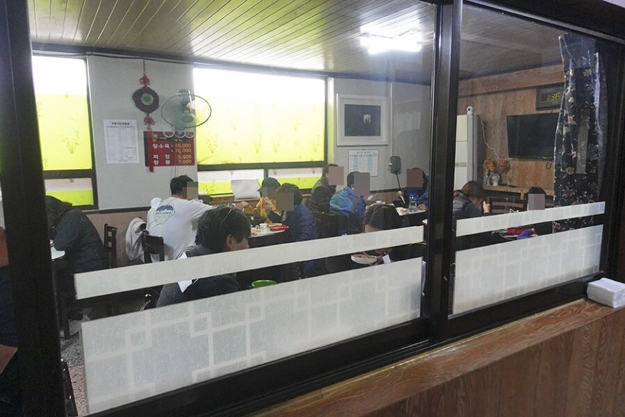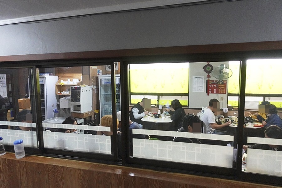 생각보다 깔끔한 실내였고 좁고 긴 방을 뿌라스틱 자바라를 이용해 조각조각 나누어 놓았다.