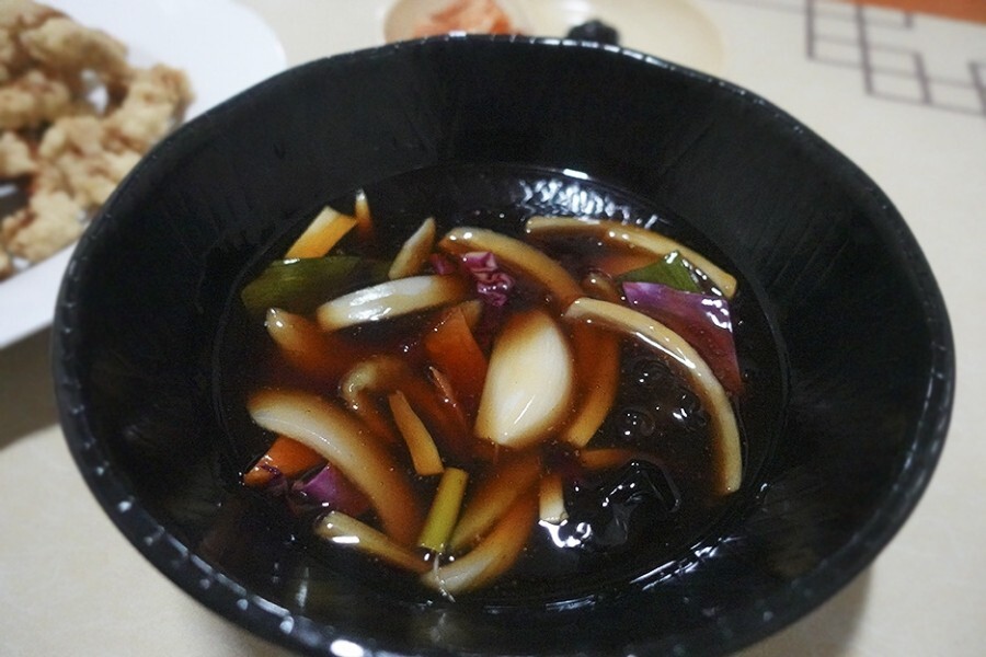 소스는 시커먼 노두유(이것저것 때려 넣은 중국식 간장 같은 거) 베이스로 내가 선호하지 않는 버전이다.
