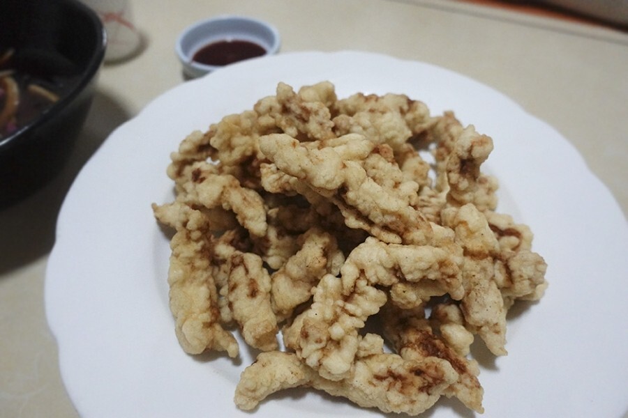 찍먹 주문 후 반반 나눠서 절반은 빠먹으로... 근자에 튀김옷이 형편 없어지면서 찍먹인 것이지 진정한 탕슉 맛은 부먹이다.