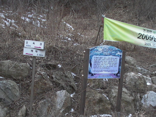 배재에서 뒷산으로 오르다 만나는 안내표시 (14:55분)