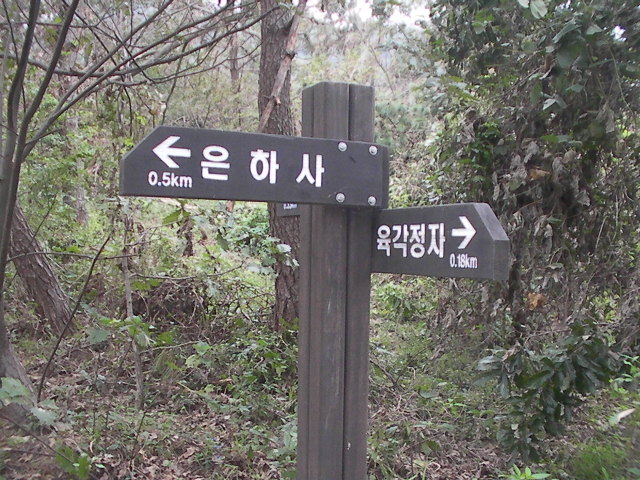 능선을 따라 하산하려던 계획을 바꿔 은하사 방향 이정표를 따라 내려갔다