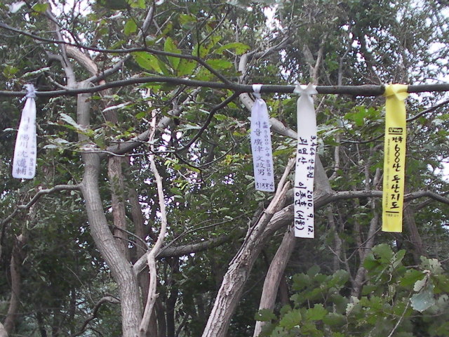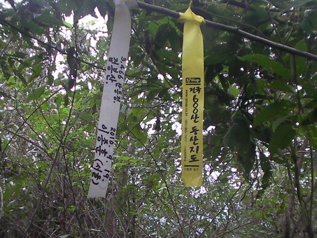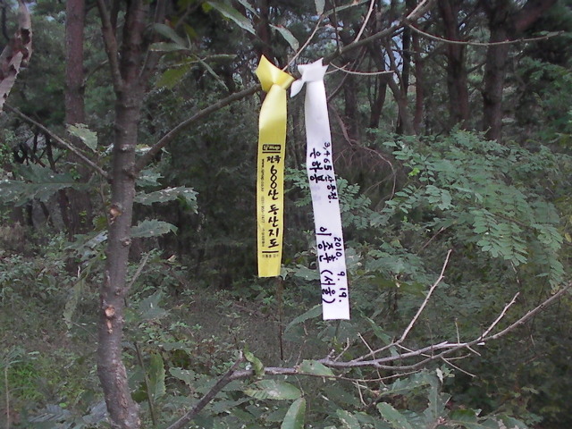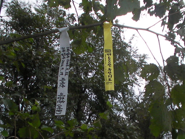 정자옆에 나의 리본을 달아놓고 정자에 앉아 휴식을 하면서 중식도 하고 남서능선을 따라 내려가는데 태풍 곤파스의
