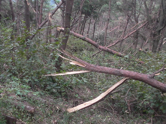 여파가 장난이 아니다 능선 하산길이 군데 군데 나무가 쓰러지고 부러져서 길을 막아 갈수가 없다