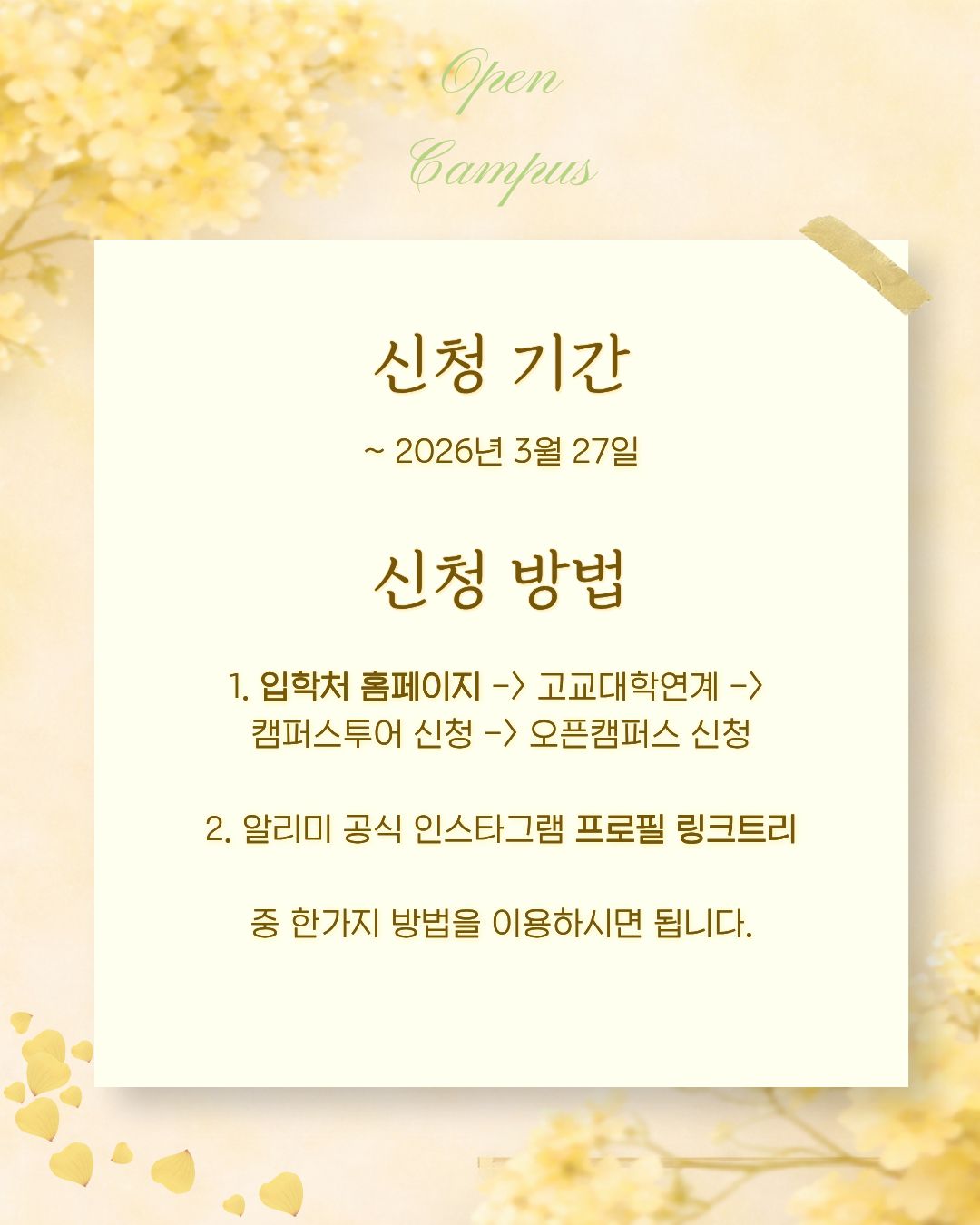 📍 신청 방법: 성균관대학교 입학처 홈페이지 → 고교대학연계 → 캠퍼스투어 신청 → 오픈캠퍼스 신청