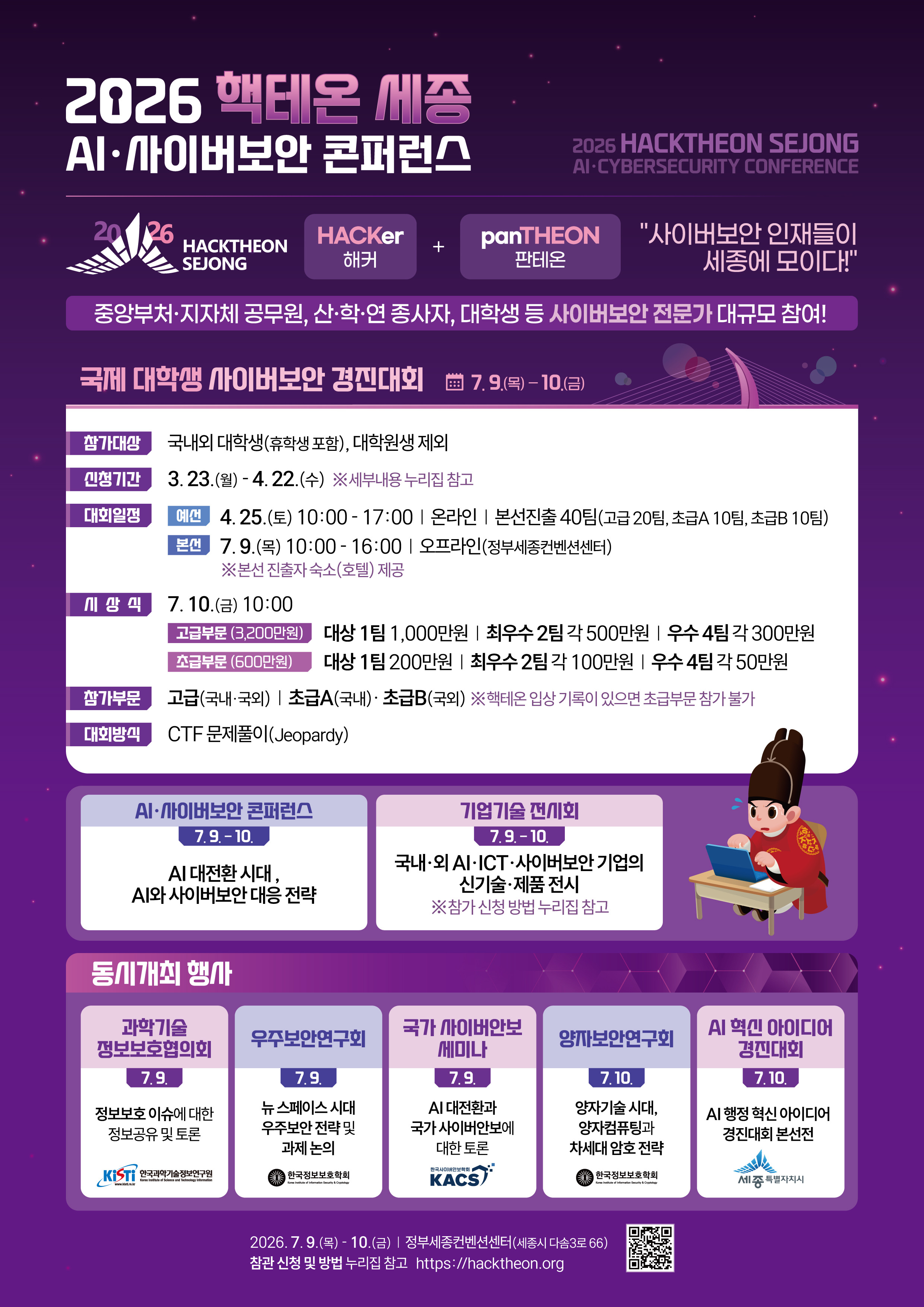 우연히 보니까 세종에서 7월에 사이버보안 관련 행사랑 대학생 경진대회 같이 한다고 하더라고요!