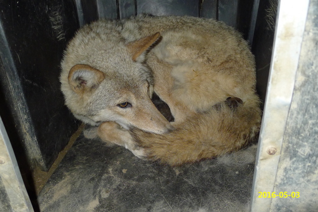 암컷늑대가 분만시 안정을 취하기위해 숫컷(대장)늑대를 밖에 우리에 격리시키다가 일주일만에 문을열어 합사기키자