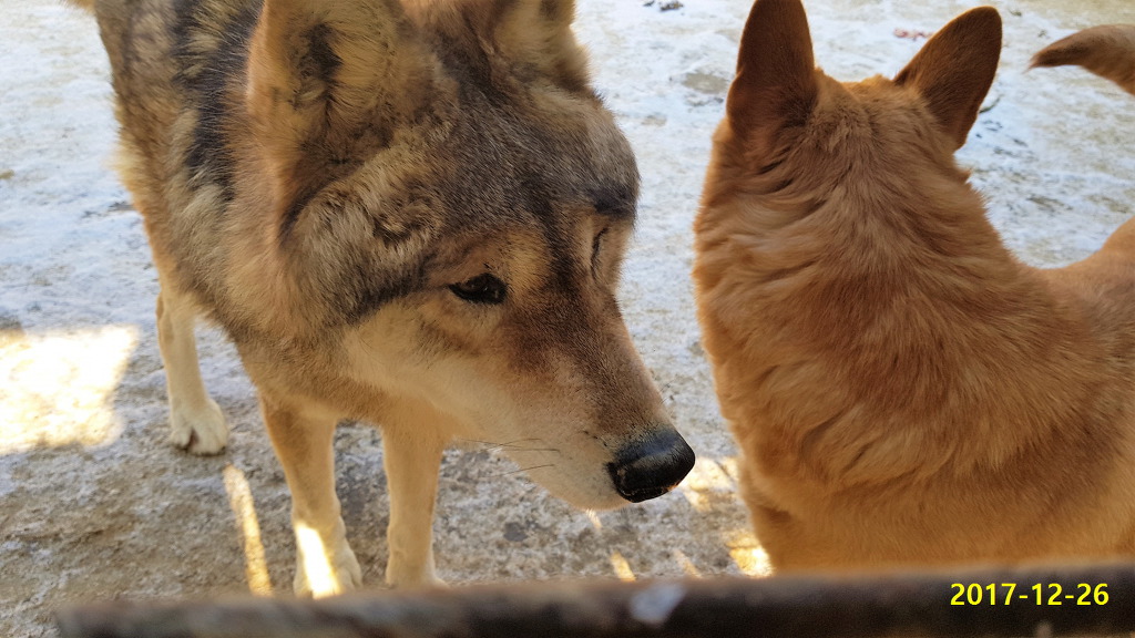 * 늑대사육 만 14년만에 숫컷늑대와 개 사이 교배 3번째성공 [늑대가 고령(14세)으로 임신될런지 ?]