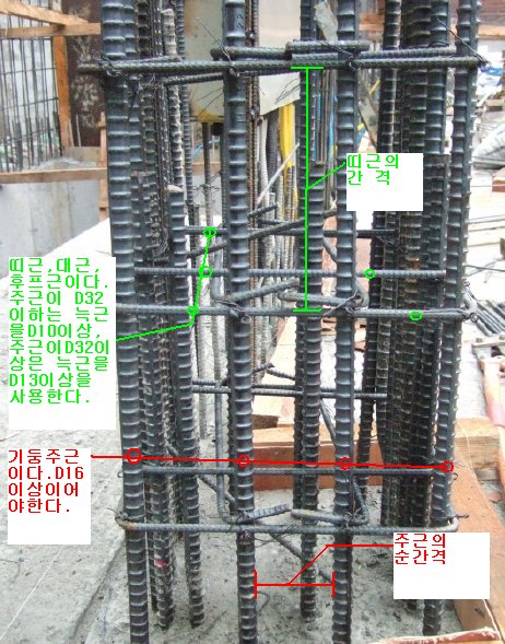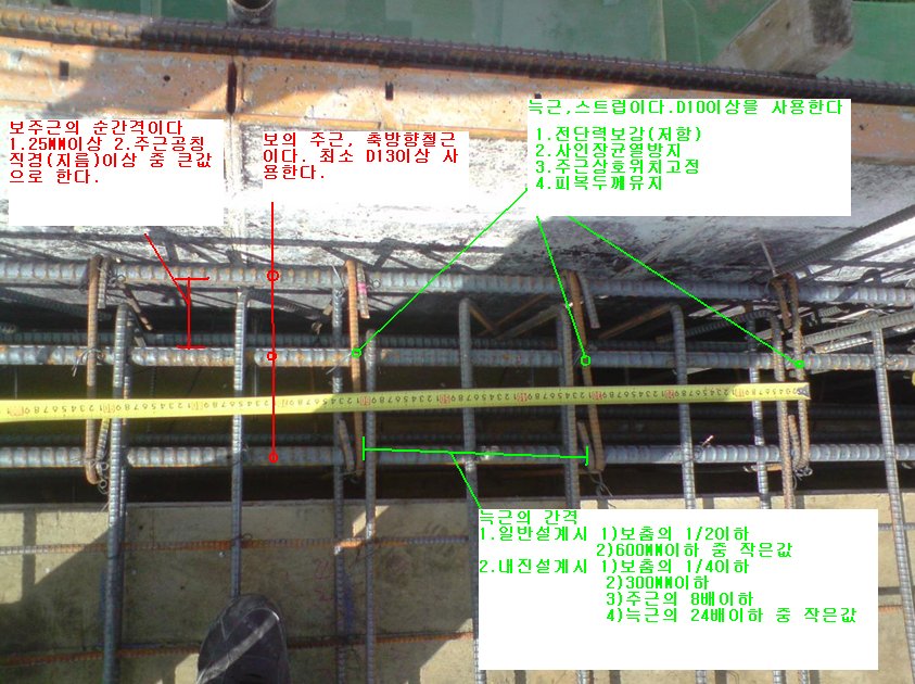 철근의 명칭과 각각의 간격은 기둥과 보에서 많이 나온다.