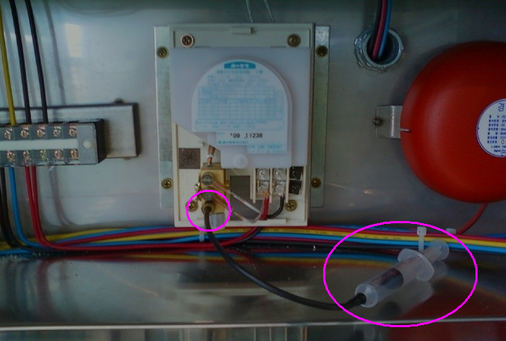 테스트관에 주사기로 공기를 넣어 정상적으로 작동되면 램프가 작동된다.