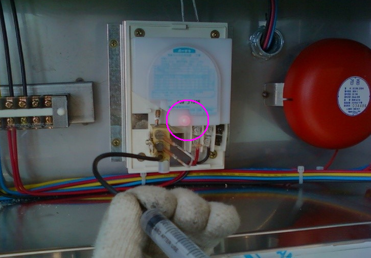 5.간혹 감지기가 작동이 안되는 경우에는 다음과 같이 테스트를 한다.