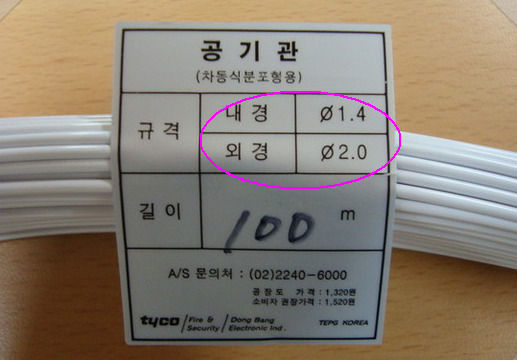 6. 대부분 연결된 배관은 외경2mm. 내경1.4mm정도의 피복이 되어 있는 동관을 사용한다.