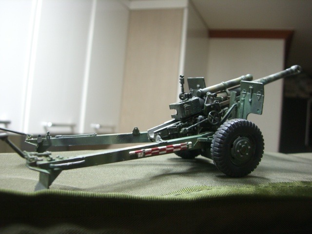 M101과 다른점은 가장 다른점이 제퇴기가 있다는 점과 포신이 길어 사거리가 증대된 점 그리고 약실 부분이 늘어난 것과 포방패도 다른점인데 제가 마음먹고 처음으로 개조한 작품이라고 할 수 있습니다.