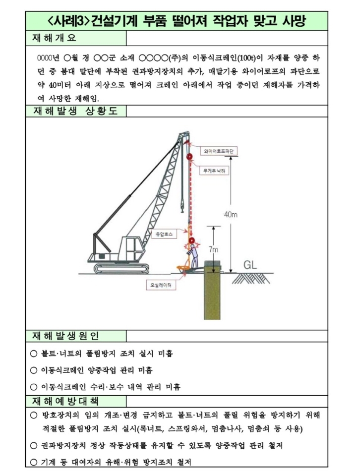 크레인의 와이어로프 파단으로 근로자 사망 재해예방 작성자기술지도 충청도 재해예방 기술지도|작성시간20.08.08|조회수1,253 목록 댓글 0 글자크기 작게가 글자크기 크게가 크레인의 와이어로프 파단으로 근로자 사망 재해예방와이어로프의 끝장 처리에 따른 강도 저하율와이어로프의 클립 체결 주식도resized_20200808_115128_575109418.jpg215.04KB 첨부파일첨부된 파일이 4개 있습니다. jpg 파일 resized_20200808_115128_575109418.jpg 다운로드 jpg 파일 resized_Screenshot_20201109-153153~2.jpg 다운로드 jpg 파일 resized_Screenshot_20201109-153207~2.jpg 다운로드 jpg 파일 resized_20200808_115128_575109418.jpg 다운로드 다음검색 현재 게시글 추가 기능 열기 북마크 공유하기 신고 센터로 신고 댓글 댓글 0 댓글쓰기 답글쓰기 댓글 리스트
