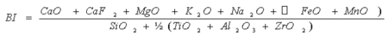 용접 Flux의 염기도는 다음의 식과 같이 염기성 물질과 금속 산화물의 일정한 비를 나타내며,
