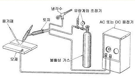 - 텅스텐 전극봉이 비소모성이므로 용가재의 첨가 없이도 아크열에 의해 모재를 녹여 용접할 수
