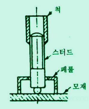 볼트나 환봉을 피스톤 형의 홀더에 끼우고 모재와 볼트 사이에