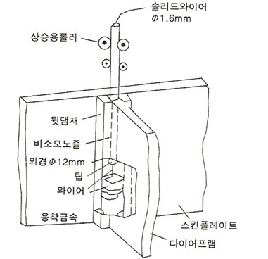 와이어는 탈산원소를 함유하고, 외면에 동피복을 한 솔리드 와이어와 얇은판에 플럭스를 속에 넣어