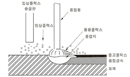 서브머지드 아크용접은 이음부 용접표면에 미세한 입상의 플럭스를 공급하고
