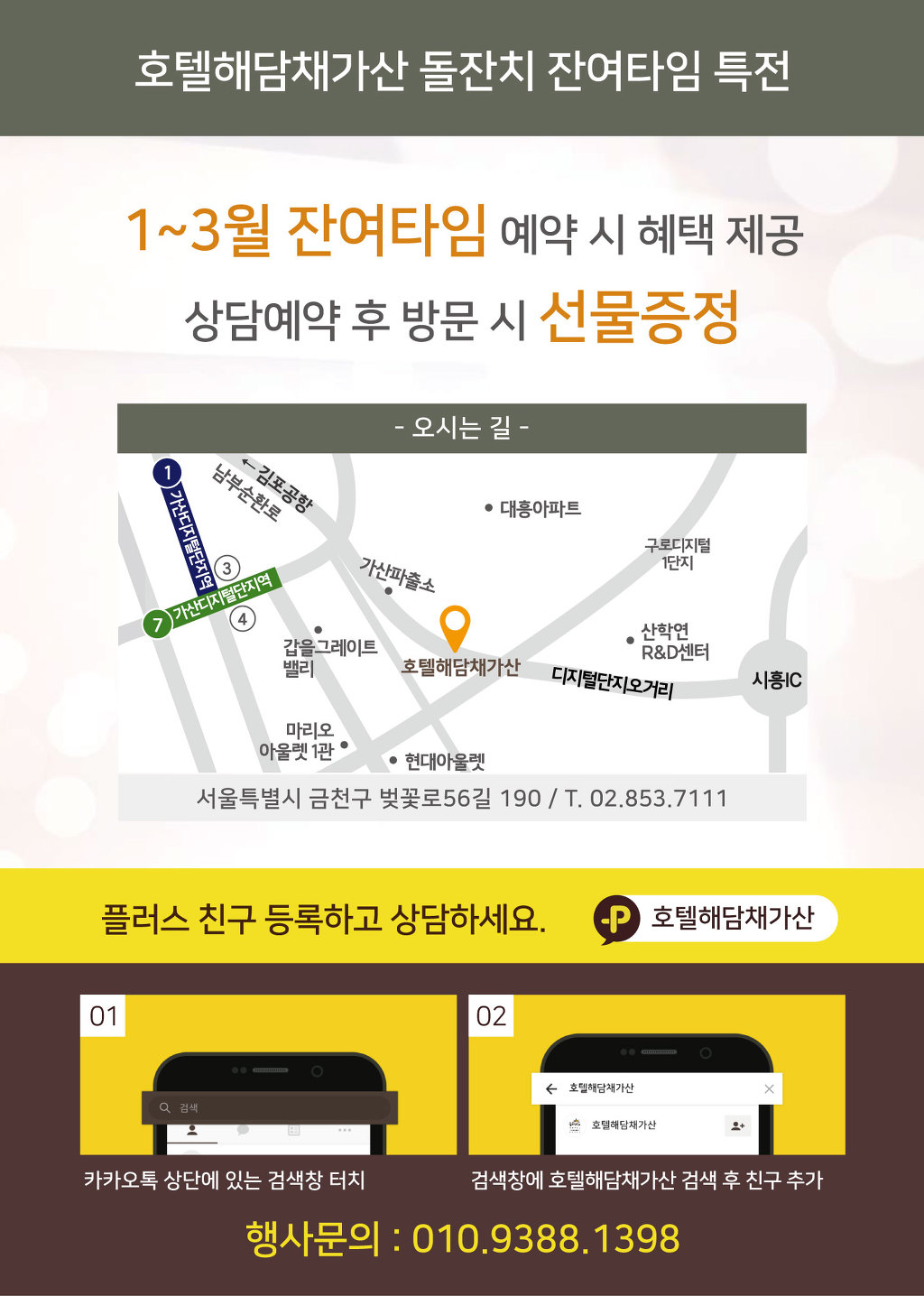 잔여타임 행사중이니 문의전화 하시고 방문하시면 선물도 가져가실 수 있습니다.