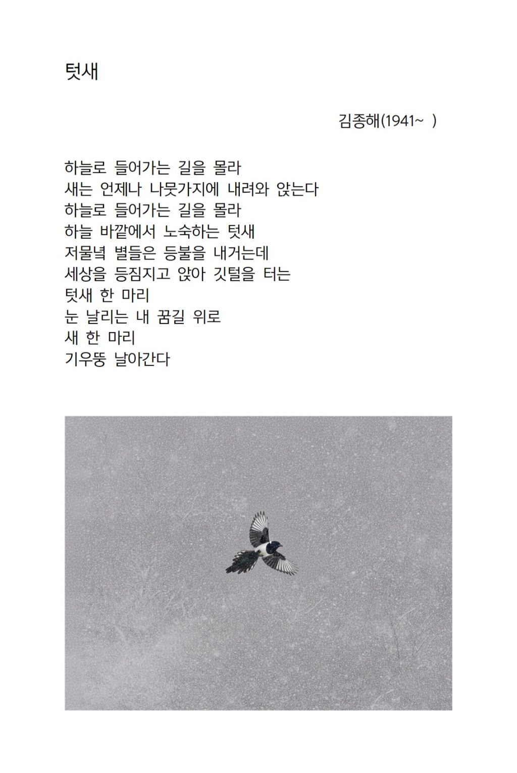 오늘의 시 : 텃새 작성자보산정범진|작성시간26.01.14|조회수15 목록 댓글 0 글자크기 작게가 글자크기 크게가 다음검색 현재 게시글 추가 기능 열기 북마크 공유하기 신고 센터로 신고 댓글 댓글 0 댓글쓰기 댓글 리스트