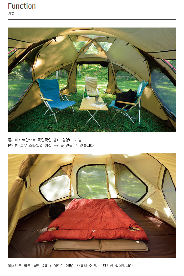이너텐트를 제거하고 플라이시트만으로 단독 쉘터로 사용이 가능합니다.