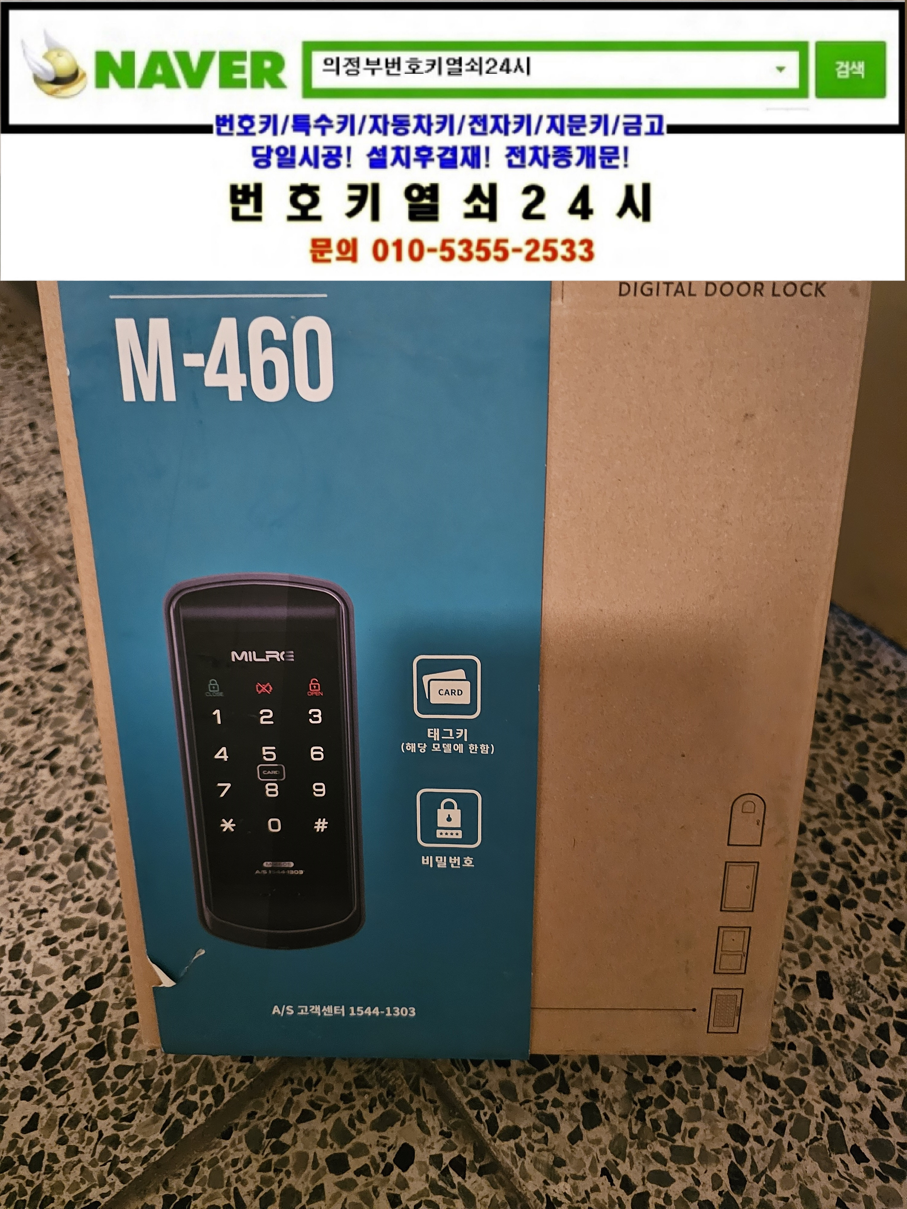 현장으로간곳은 의정부시 민락동열쇠(송산2동/효자로25) 송산주공2단지아파트입니다. 고객님댁의 기계식보조키열쇠를 디지털도어락으로 교체설치하신다고 보내드린제품중 스마트방식도어락 m460모델을 설치원하셔서 설치해드리고 정상작동확인과 비상시 9v사용방법 사용시주의사항등을 설명드리고 철수합니다.tel:010-5355-2533