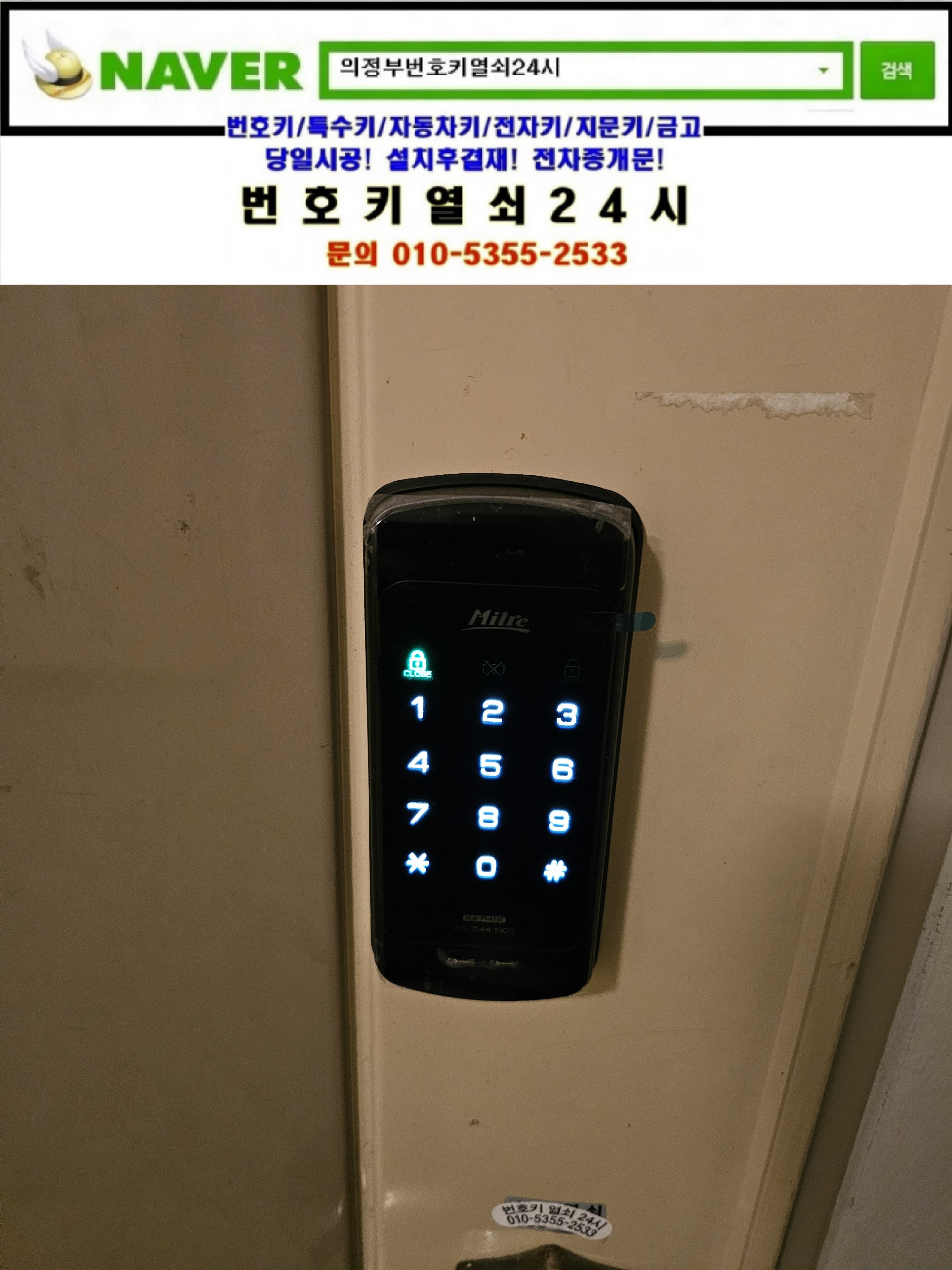 의정부시 민락동열쇠(송산2동열쇠/효자로 25) 송산주공2단지아파트(송산팰리스) 스마트방식 디지털도어락 m460은 번호키열쇠24시가(010 5355 2533) 설치하고 왔습니다.