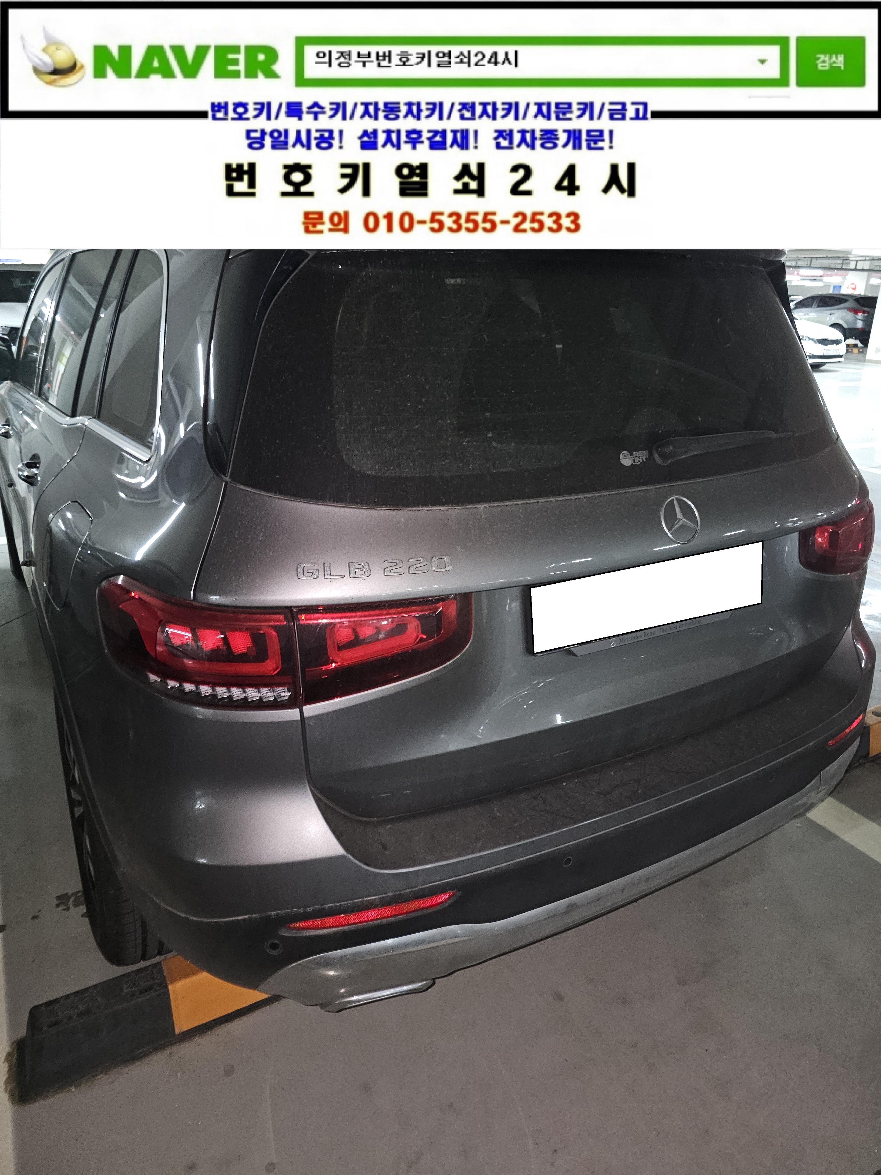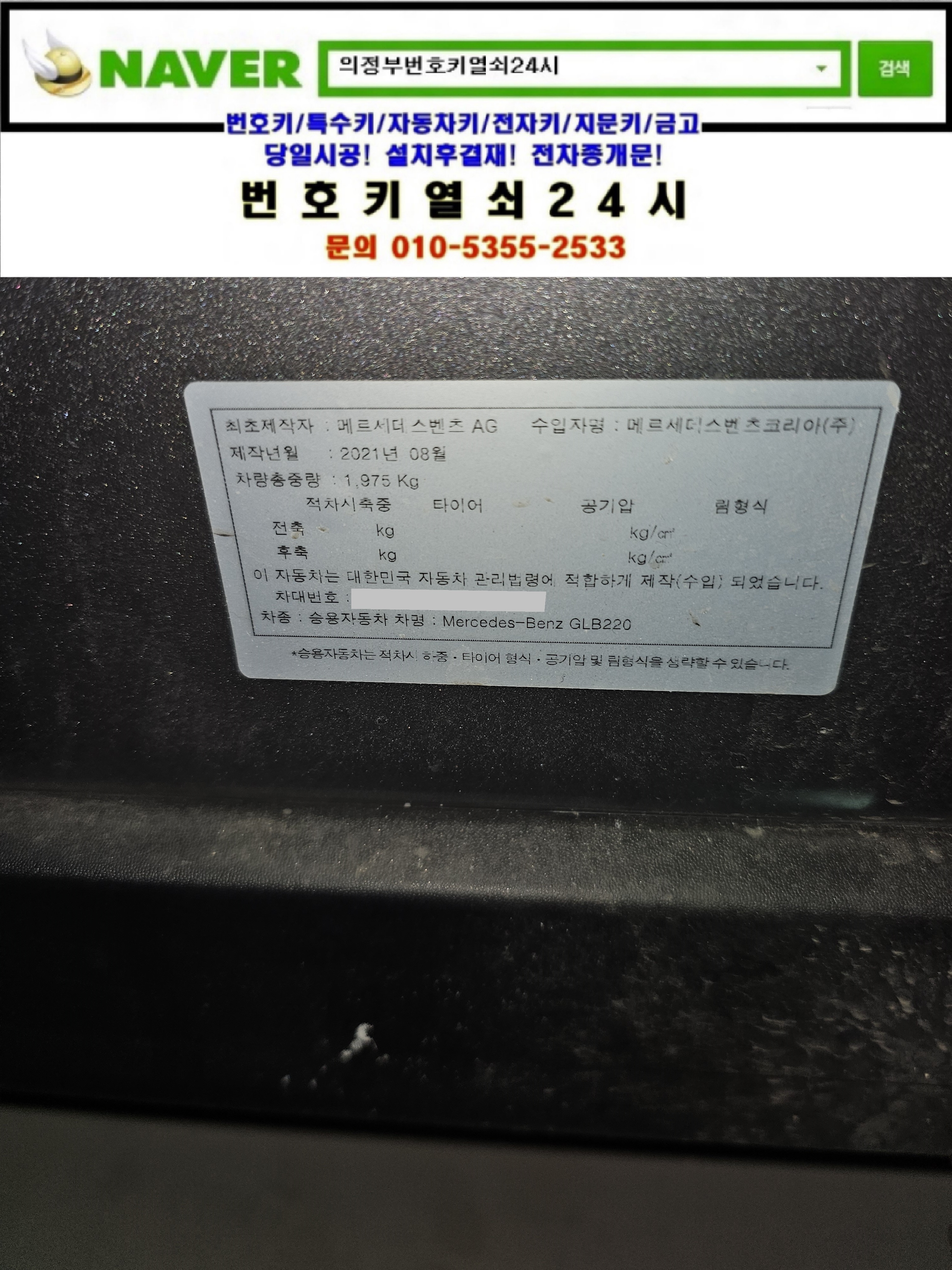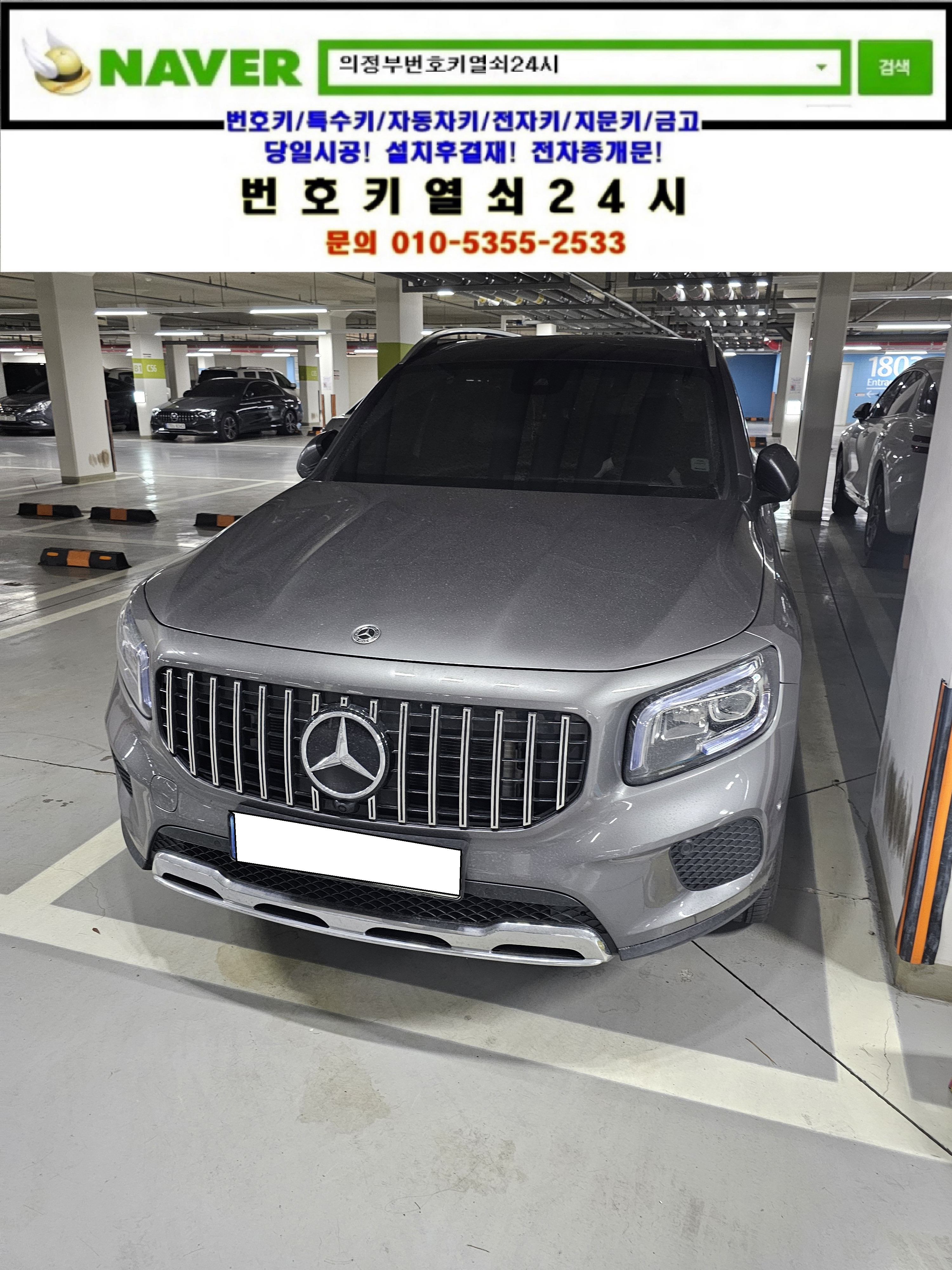 양주시 옥정동열쇠(옥정동로1길 63) 이편한세상아파트(e편한세상양주2차) 지하주차장 2022년식 벤츠 GLB220 차키차안에있는데 문잠김 잠김문 개문출장은 번호키열쇠24시가(010 5355 2533) 해결하고 왔습니다.