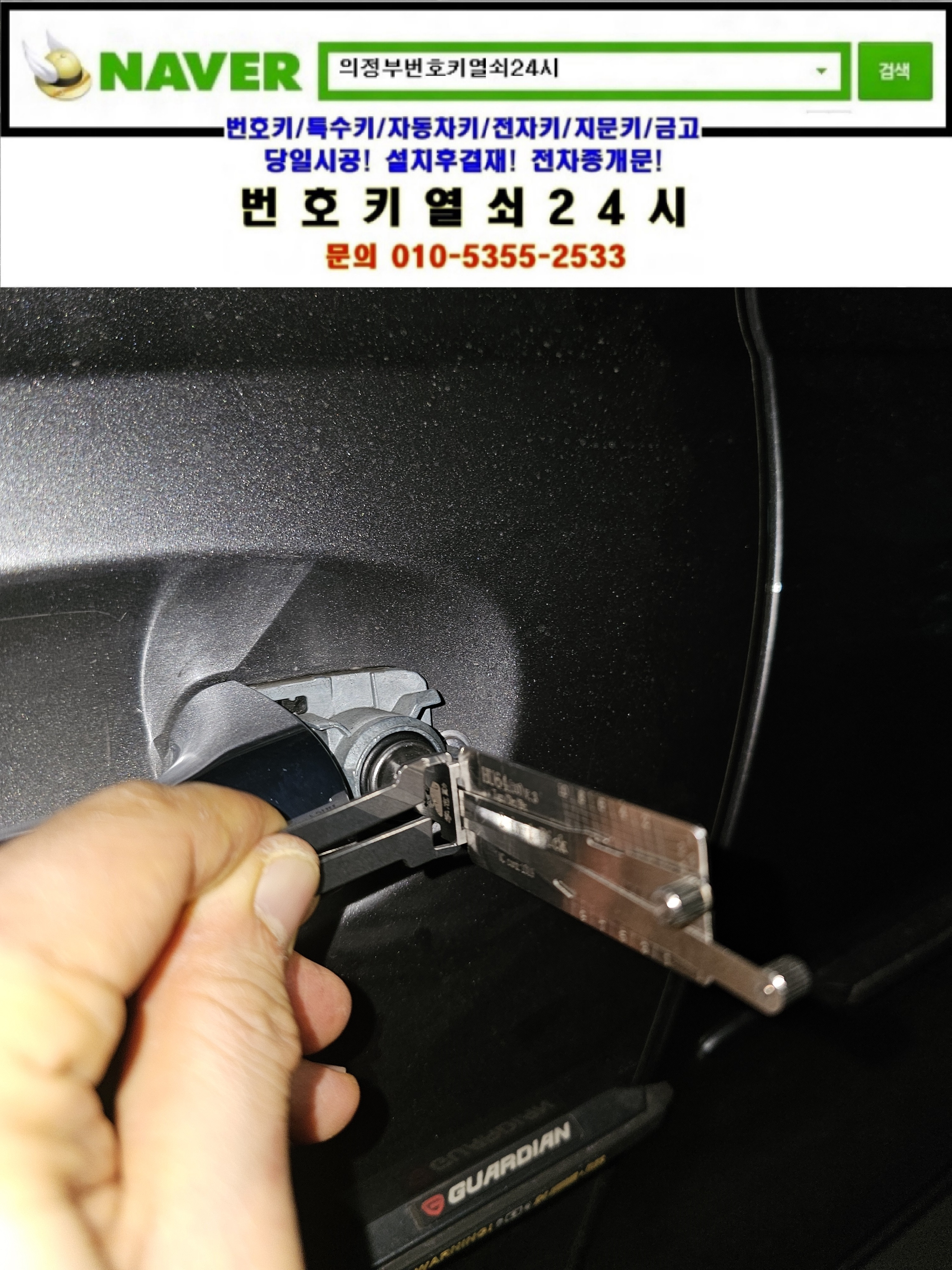 현장으로간곳은 양주시 옥정동열쇠(옥정동로1길63) 이편한세상아파트입니다. 고객님께서 벤츠 GLB220 차량인데 차키가 차안에 있는데 문이 닫혀서 문을 열어야한다면서 ㅠㅠ 벤츠차량 전용 해정공구를 이용해서 본넷방향으로 차키로 여는것처럼 공구를 회전시켜 문을 연뒤 차안에 있던 차키로 정상작동된는지 확인시켜드리고 명함을드리고 철수합니다.tel:010-5355-2533