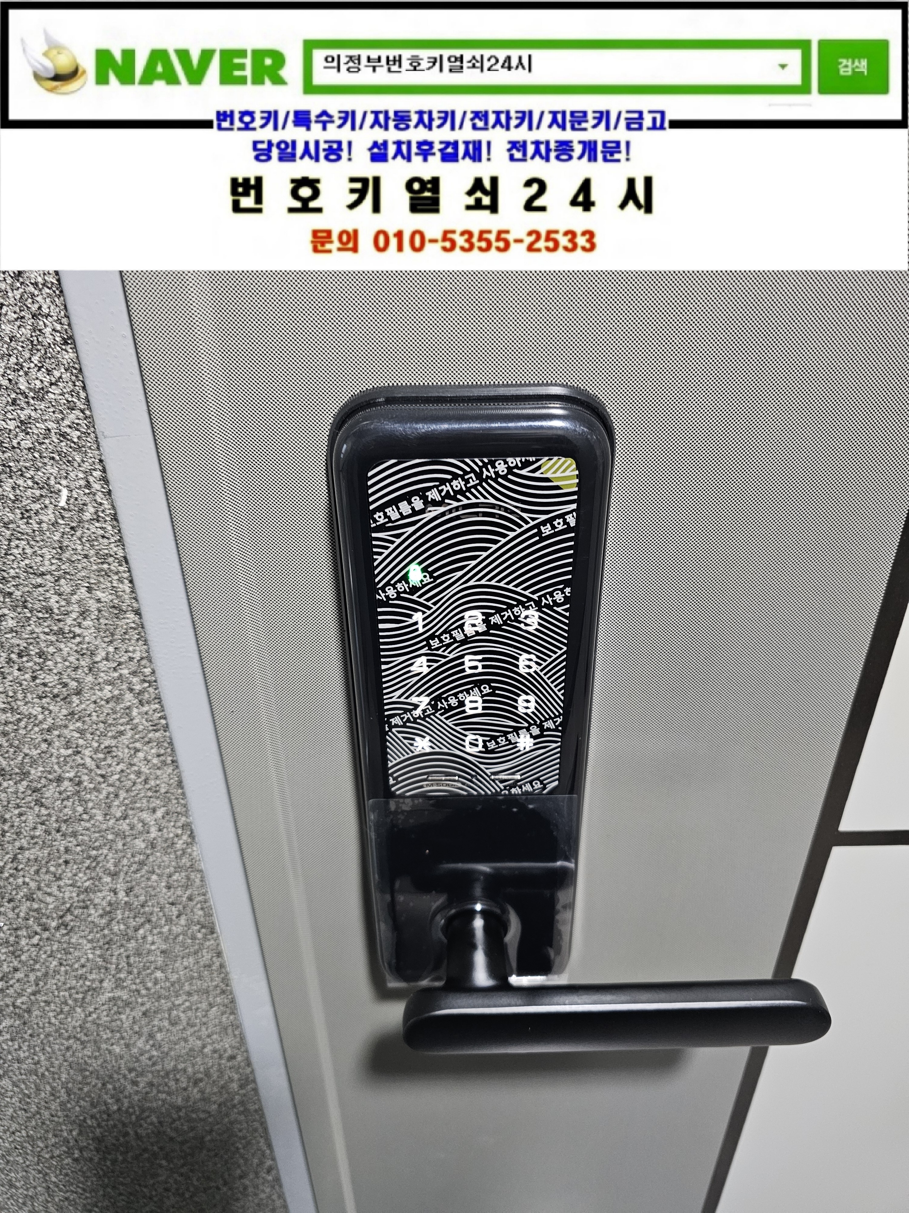 의정부시 낙양동열쇠(민락동열쇠/민락2지구열쇠/용민로237번길35) **빌라 레바주키도어락고장나 레바주키도어락 m500 교체설치는 번호키열쇠24시가(tel:010-5355-2533) 설치하고 왔습니다.