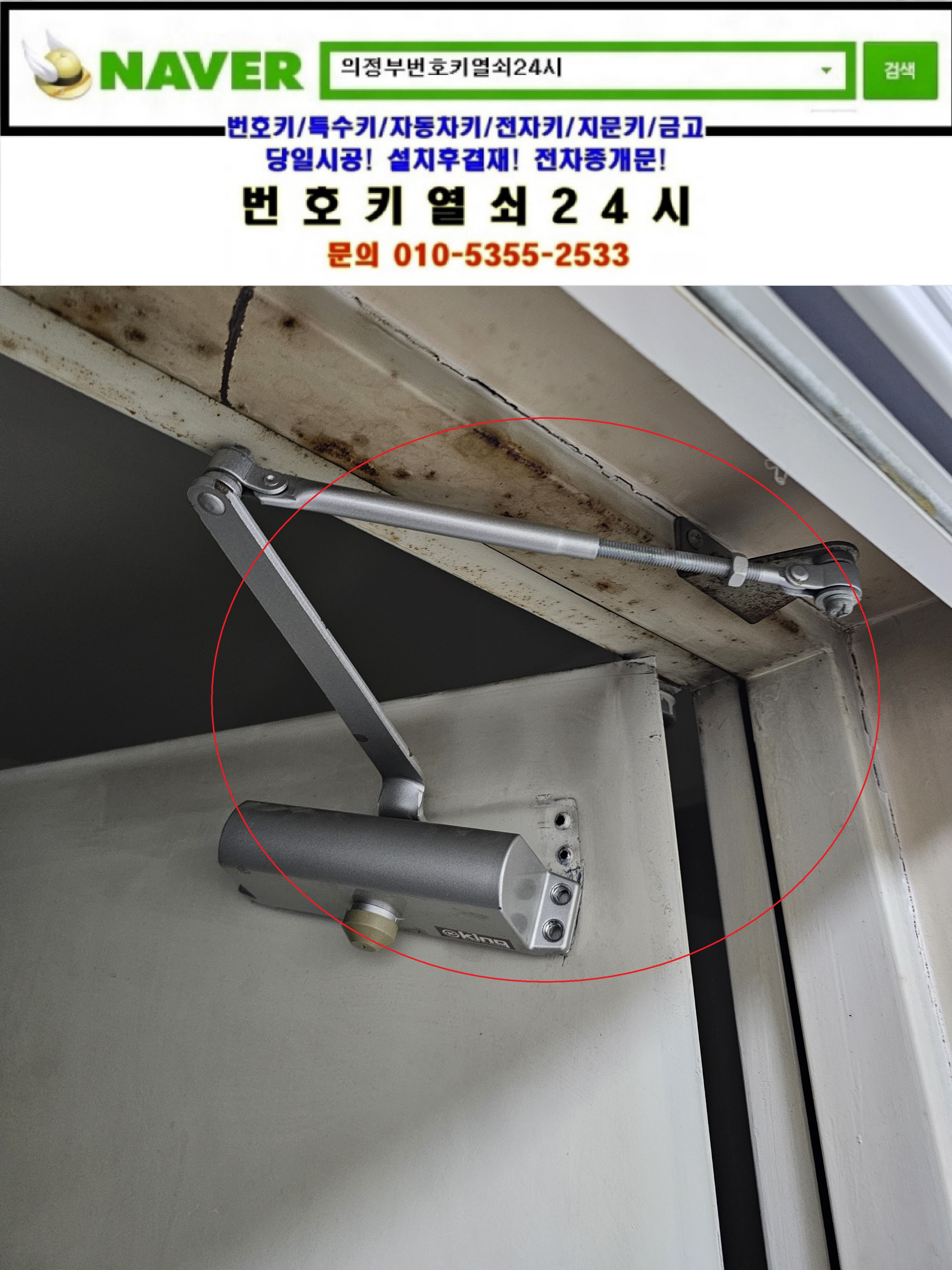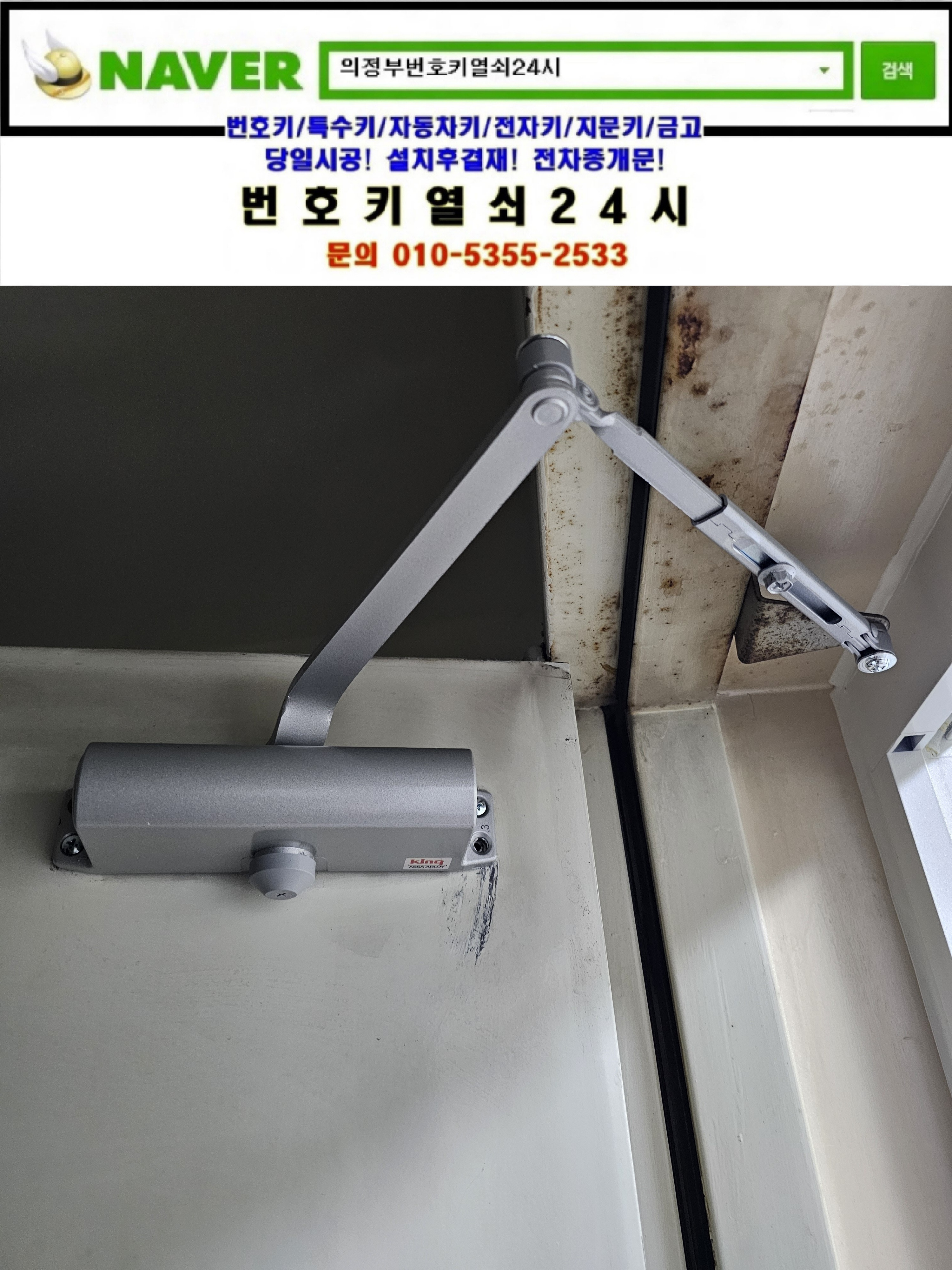 도어클로저 교체하는데 비용이 얼마나하죠? 하면서 번호키열쇠24시를 찾으셔서 도어클로저 교체서비용을 안내해드리니 설치를 요청하셔서 현장으로가서 교체설치해드렸습니다.