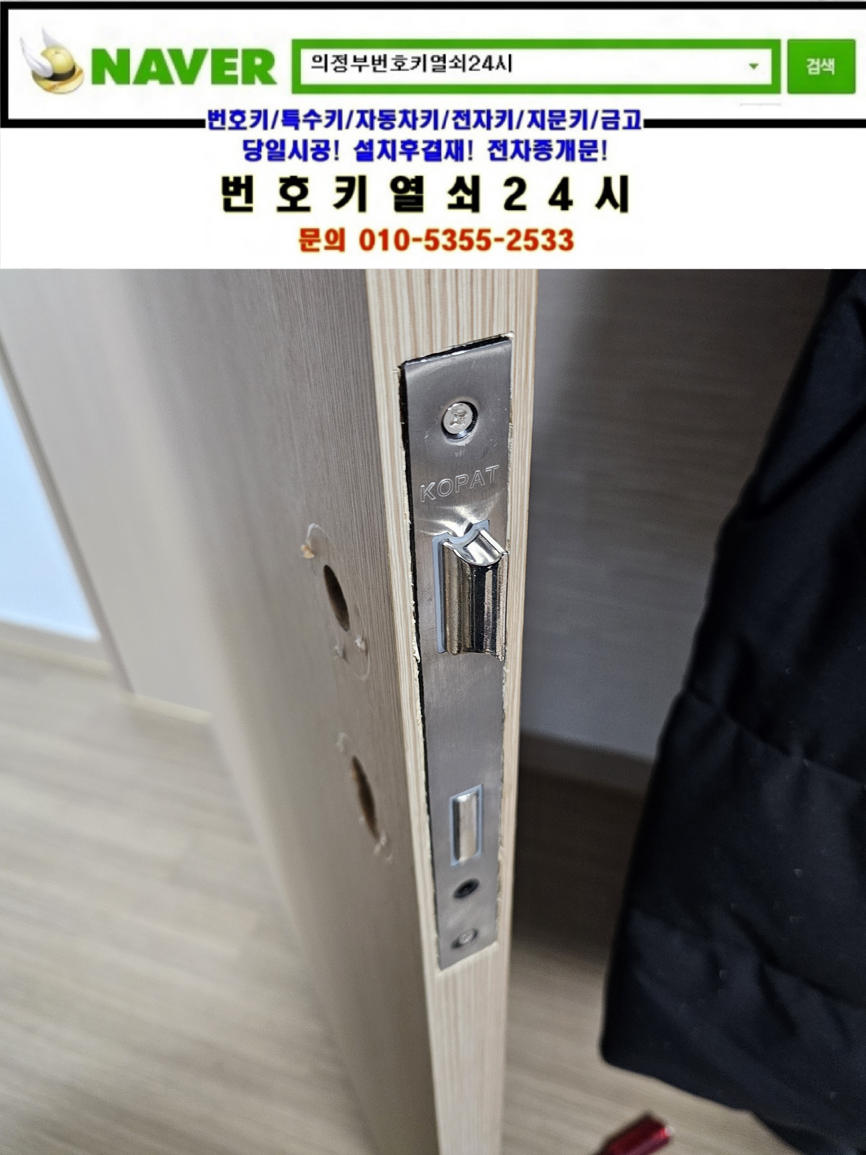 현장으로간곳은 의정부시 낙양동열쇠(용민로304) 반도유보라아파트입니다. 고객님댁의 안방 예스모티스락이 고장이나서 교체를 하는데 칫수가 안맞어 다시 주문한 코파트(kopat) 모티스락을(85*45) 교체설치해드리고 정상작동확인과 모티스락 사용시 주의사항등을 설명드리고 명함을드린뒤 철수합니다.tel:010-5355-2533