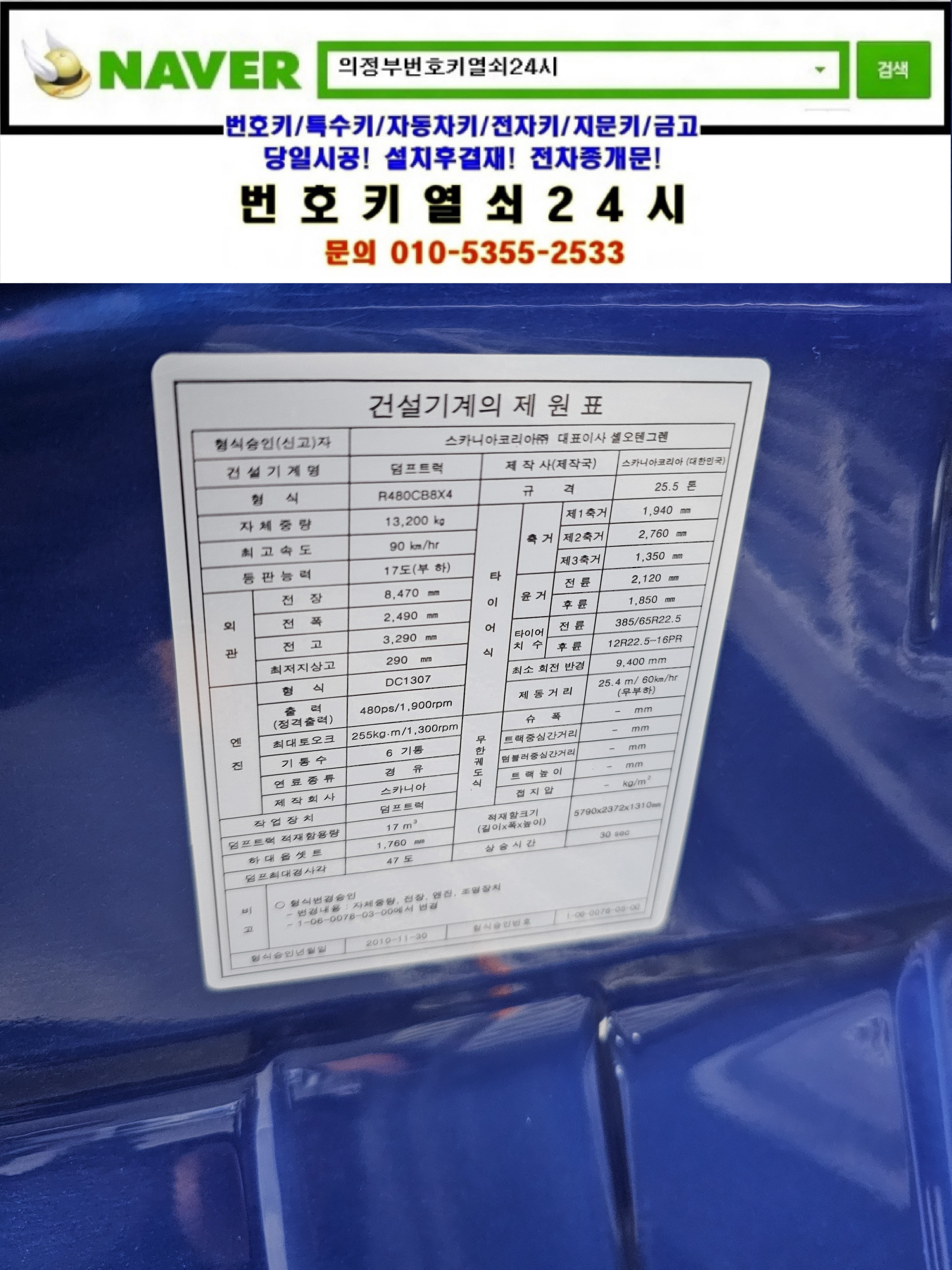 의정부시 용현동열쇠(송산1동/시민로367) **주유소 스카니아 덤프트럭 시동걸린채로 차량문잠김 차량개문출장은 번호키열쇠24시가(tel:010-5355-2533) 해결하고 왔습니다.