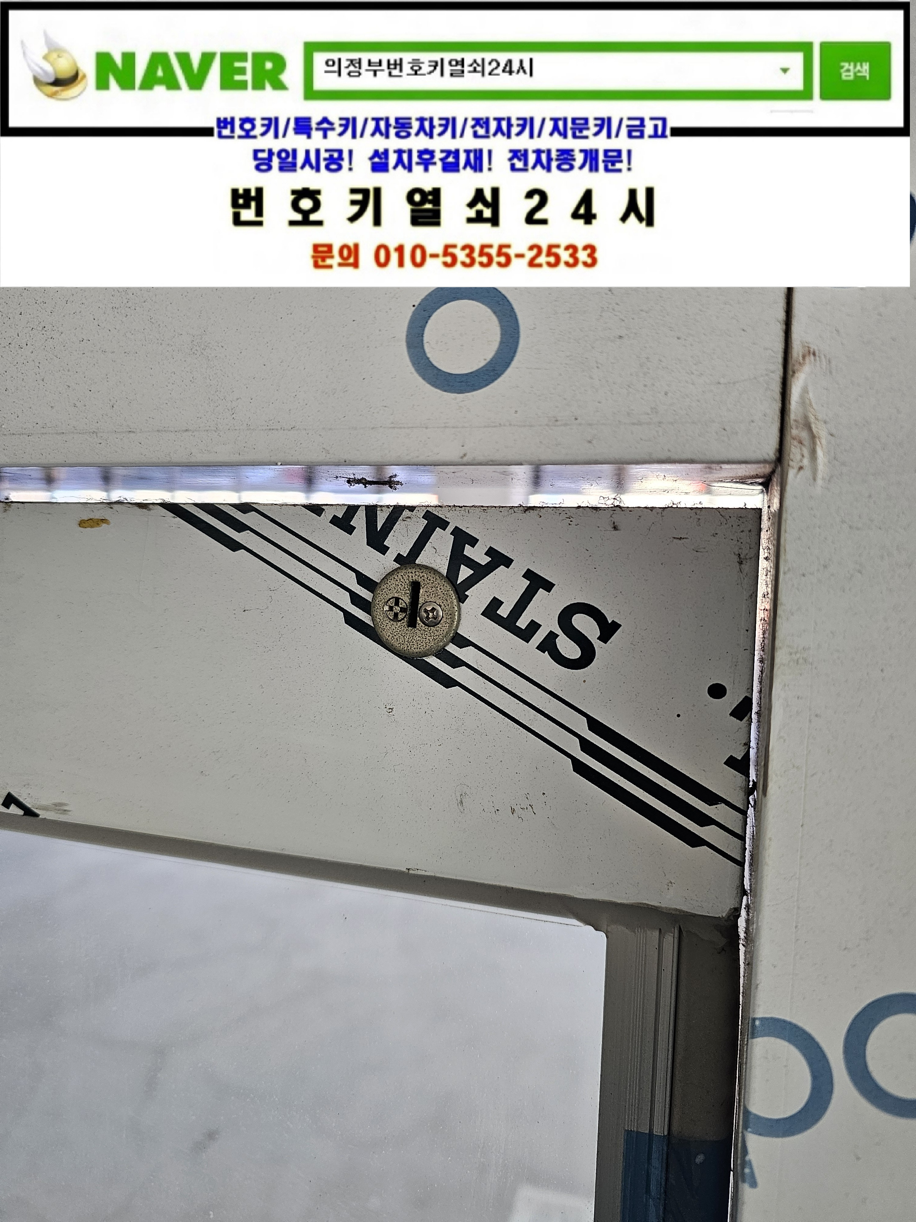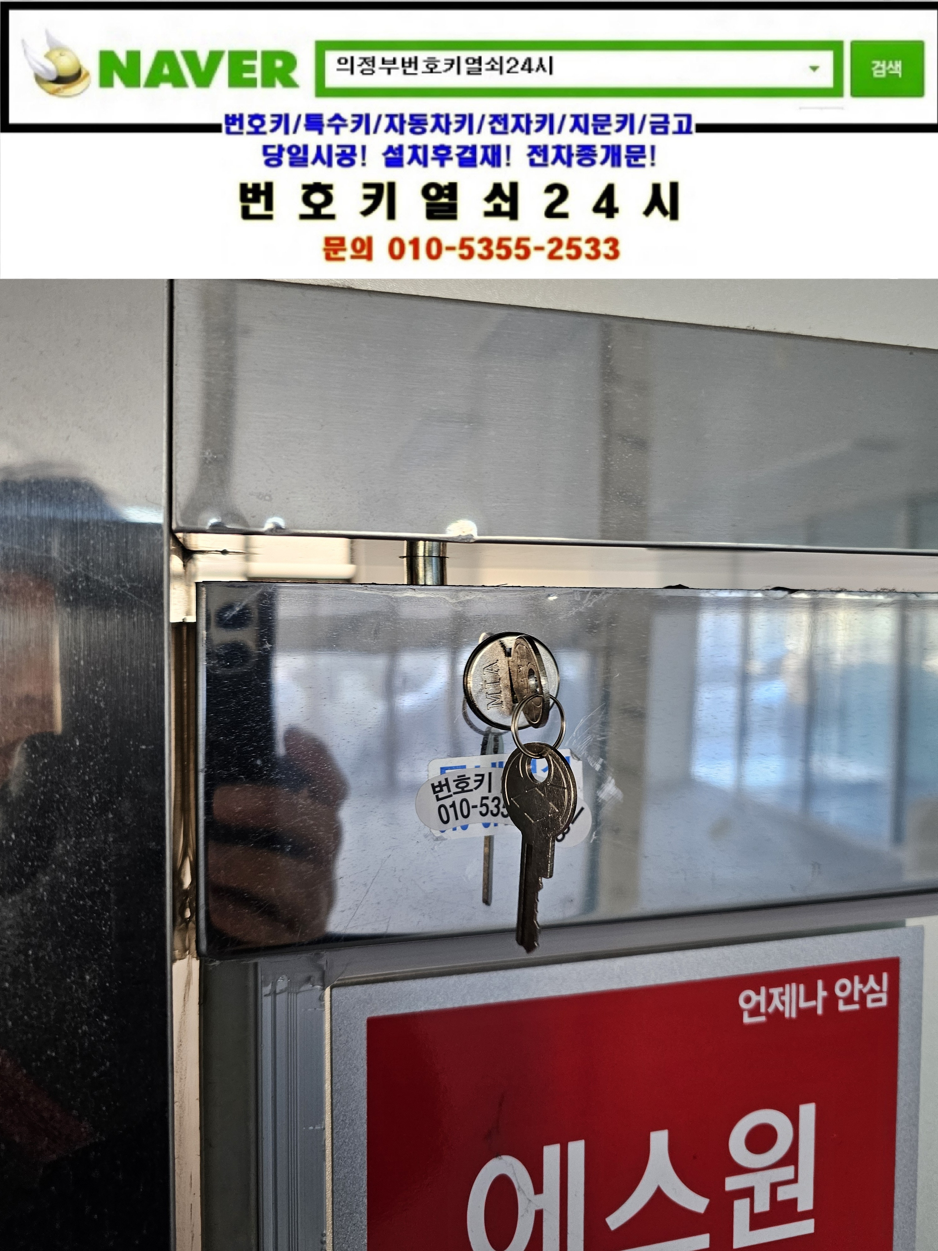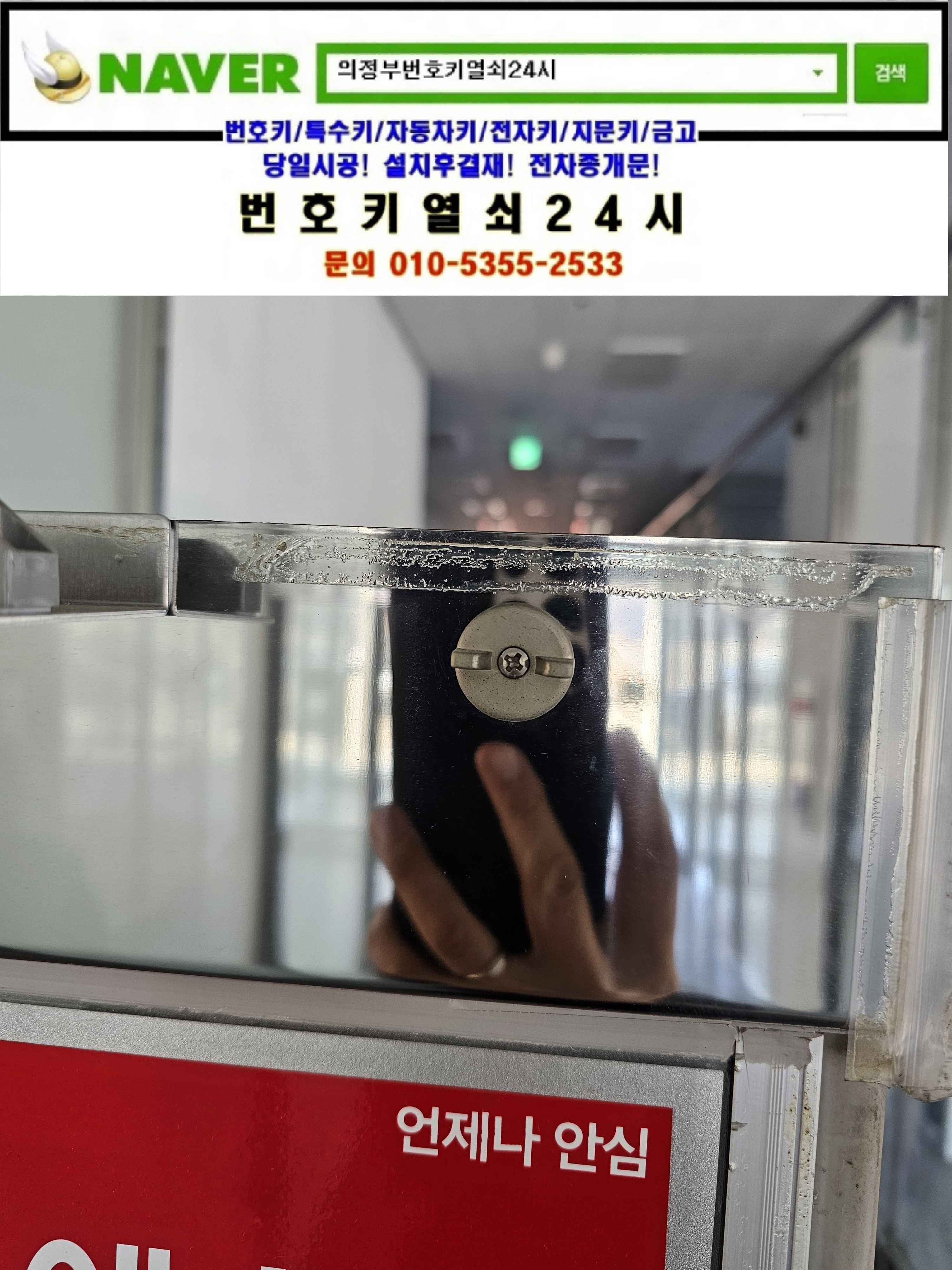 현장으로간곳은 의정부시 가능동열쇠(서부로720번길34) 녹양역부림스카이타워빌딩건물입니다. 강화유리문의 상단 기본열쇠가 없으셔서 기존 키박스를 탈거한뒤 새제품으로 교체설치하고 다른곳의 키박스도 교체설치후 설명드리고 철수합니다.tel:010-5355-2533