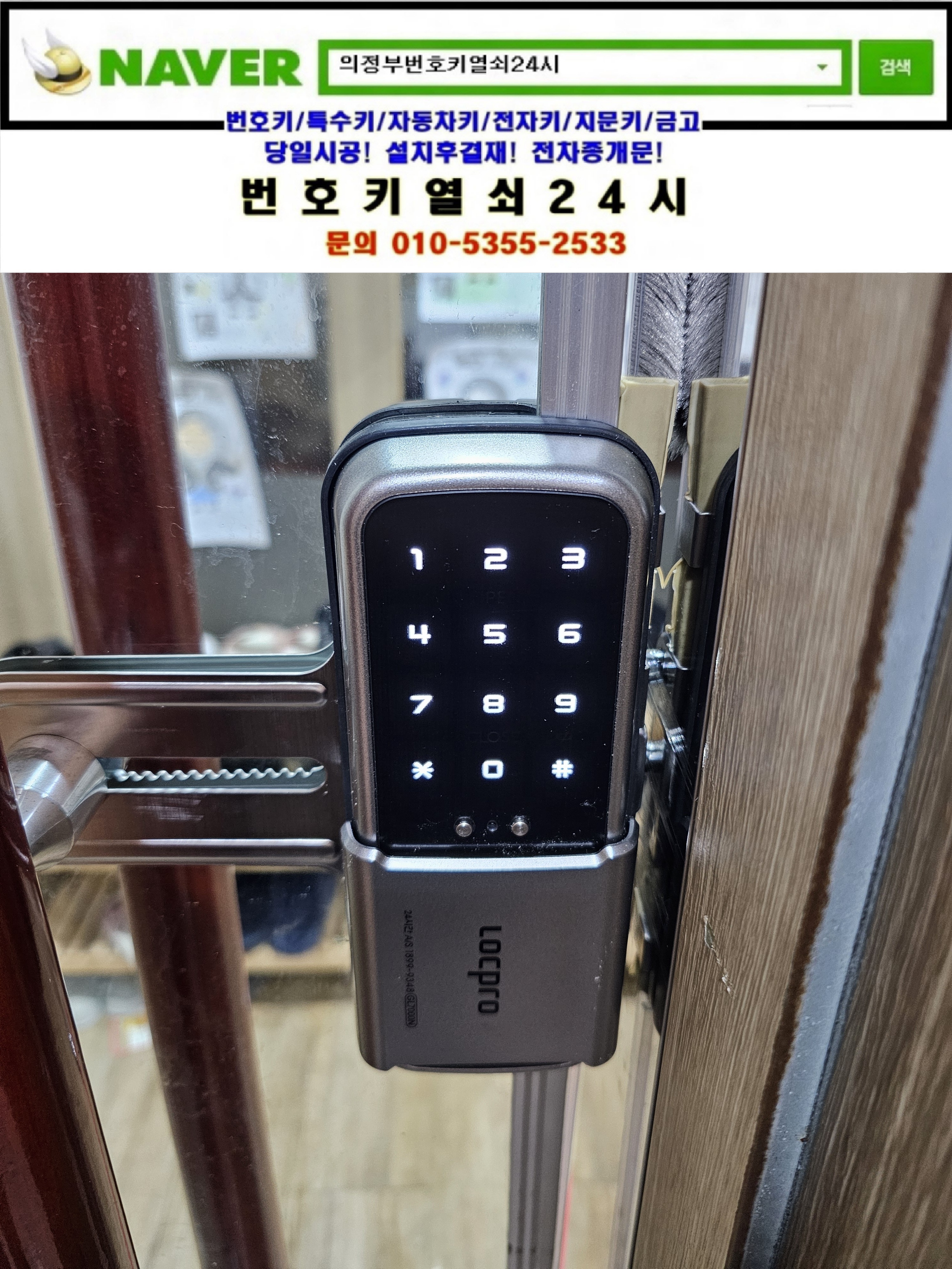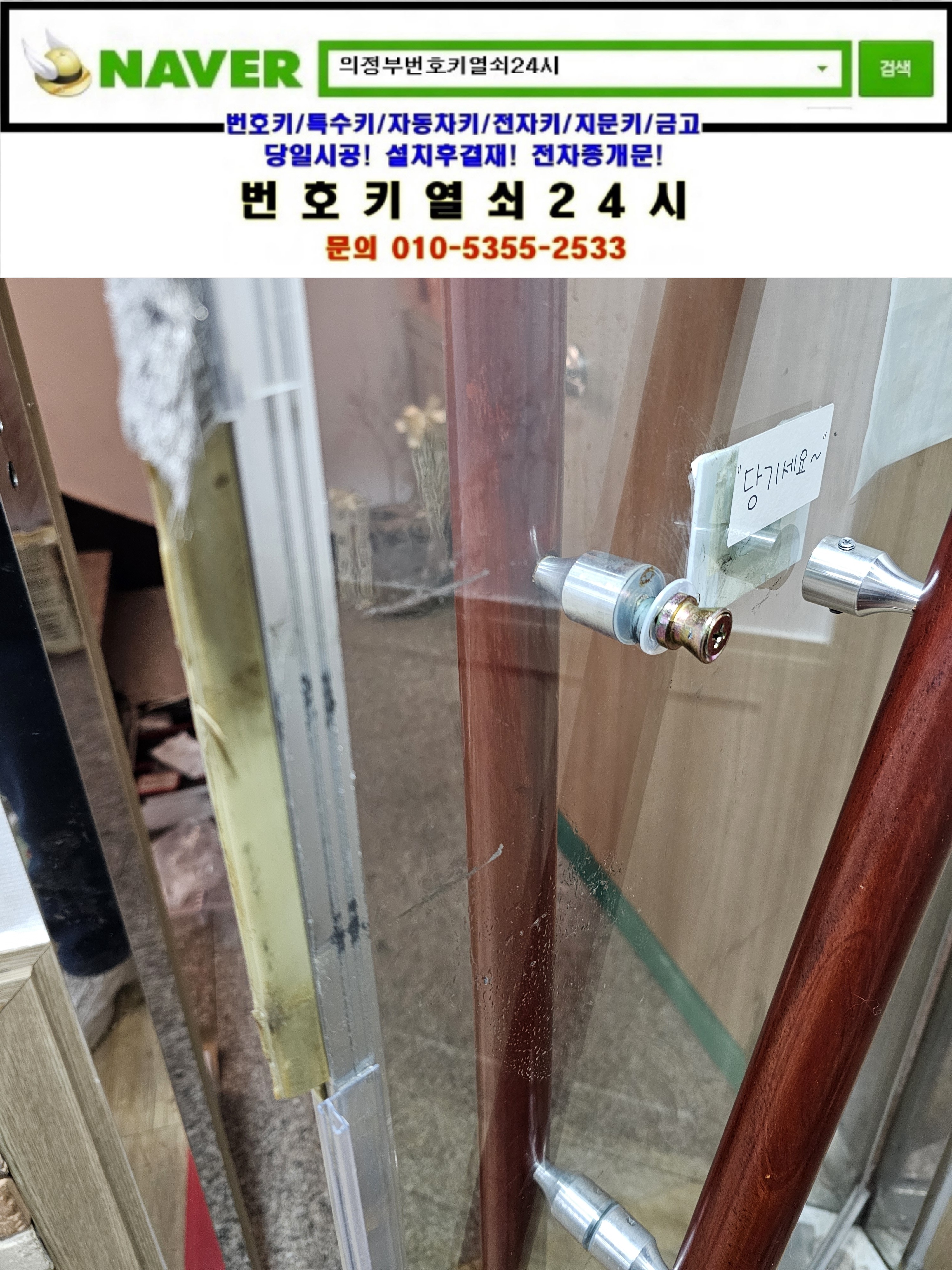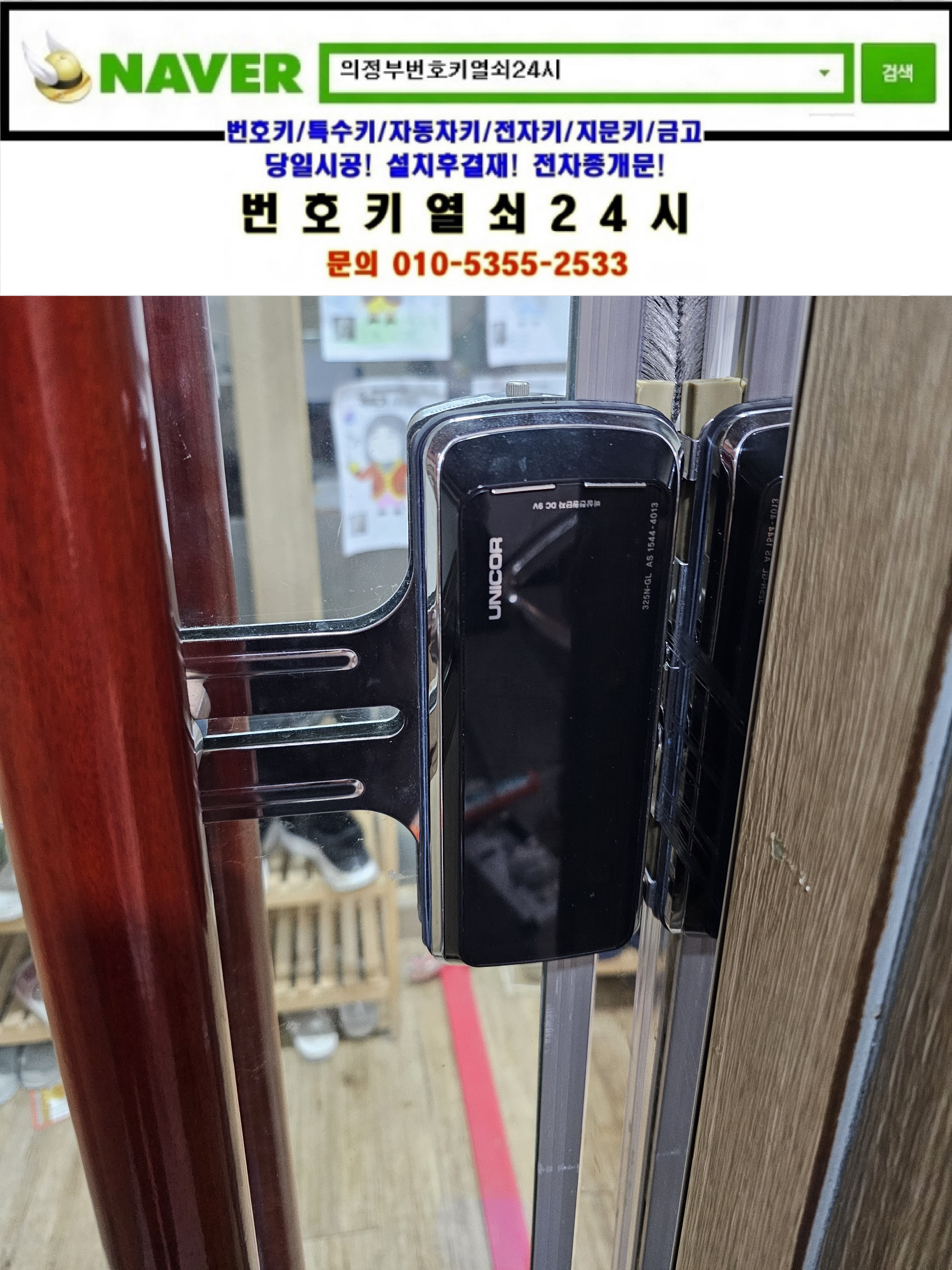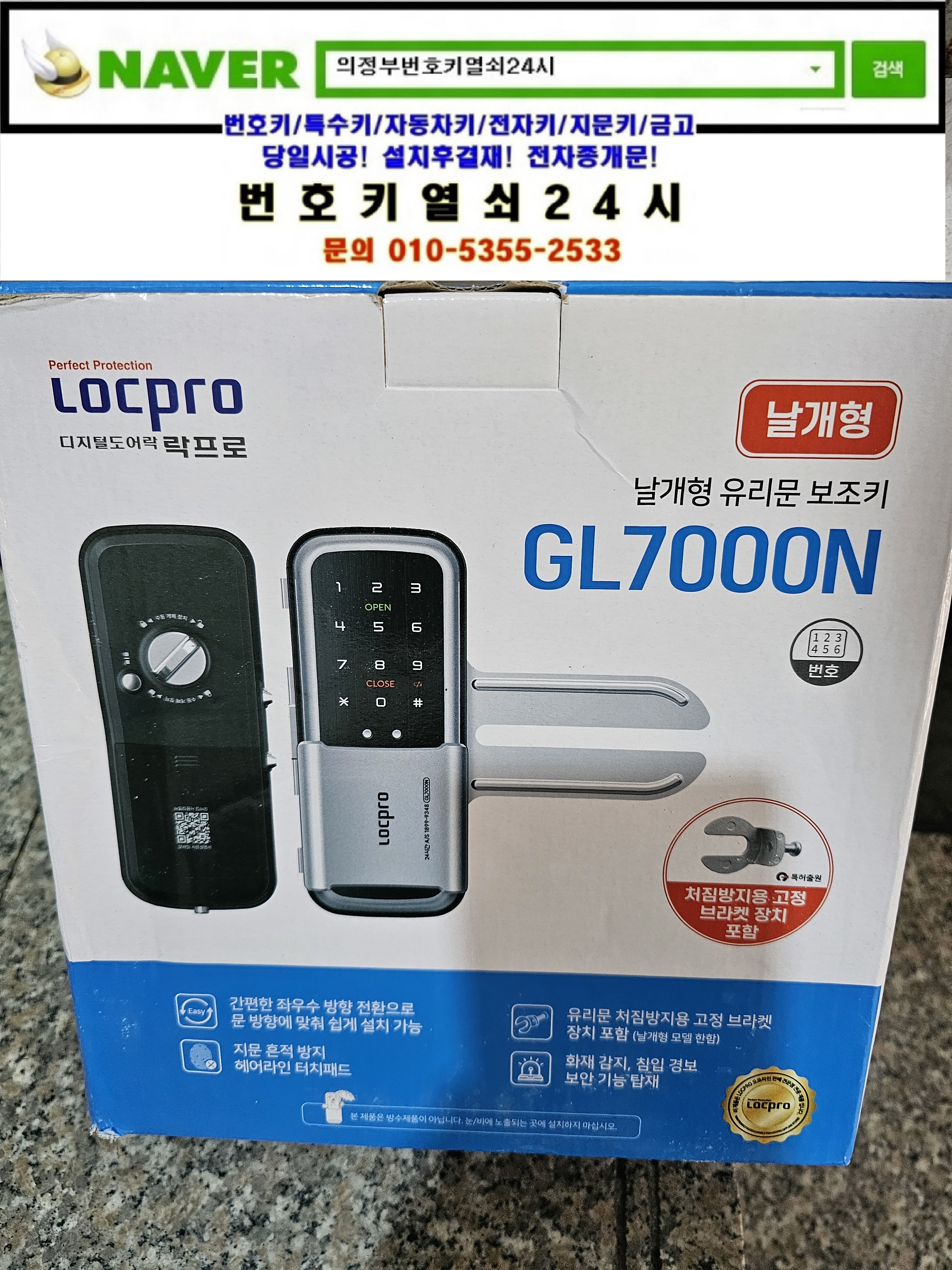 현장으로간곳은 의정부시 가능동열쇠(가능로34) **빌딩건물매장입니다. 강화유리문의 디지털도어락이 갑자기 작동을 안한다고ㅠㅠ 교체설치할 도어락 gl7000n모델을 설치해드리고 정상작동확인과 설명드리고 철수합니다.tel:010-5355-2533