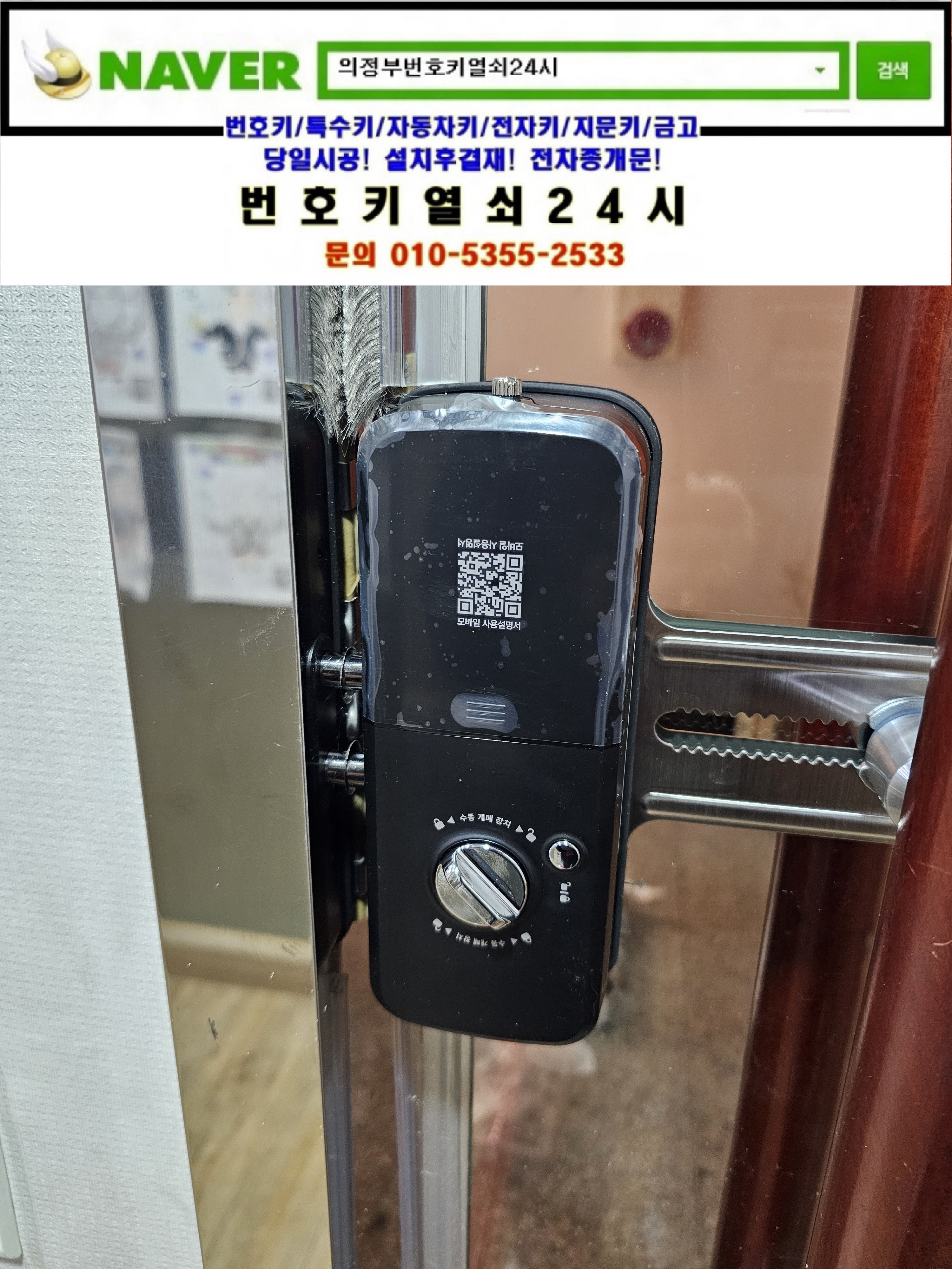 작성자가이아피닉스작성시간25.12.30조회수2 목록 댓글 0의정부시 가능동열쇠(가능로34) **빌딩건물 강화유리문 디지털도어락고장나 커버타입 도어락 gl7000n은 번호키열쇠24시가(tel:010-5355-2533) 설치하고 왔습니다.