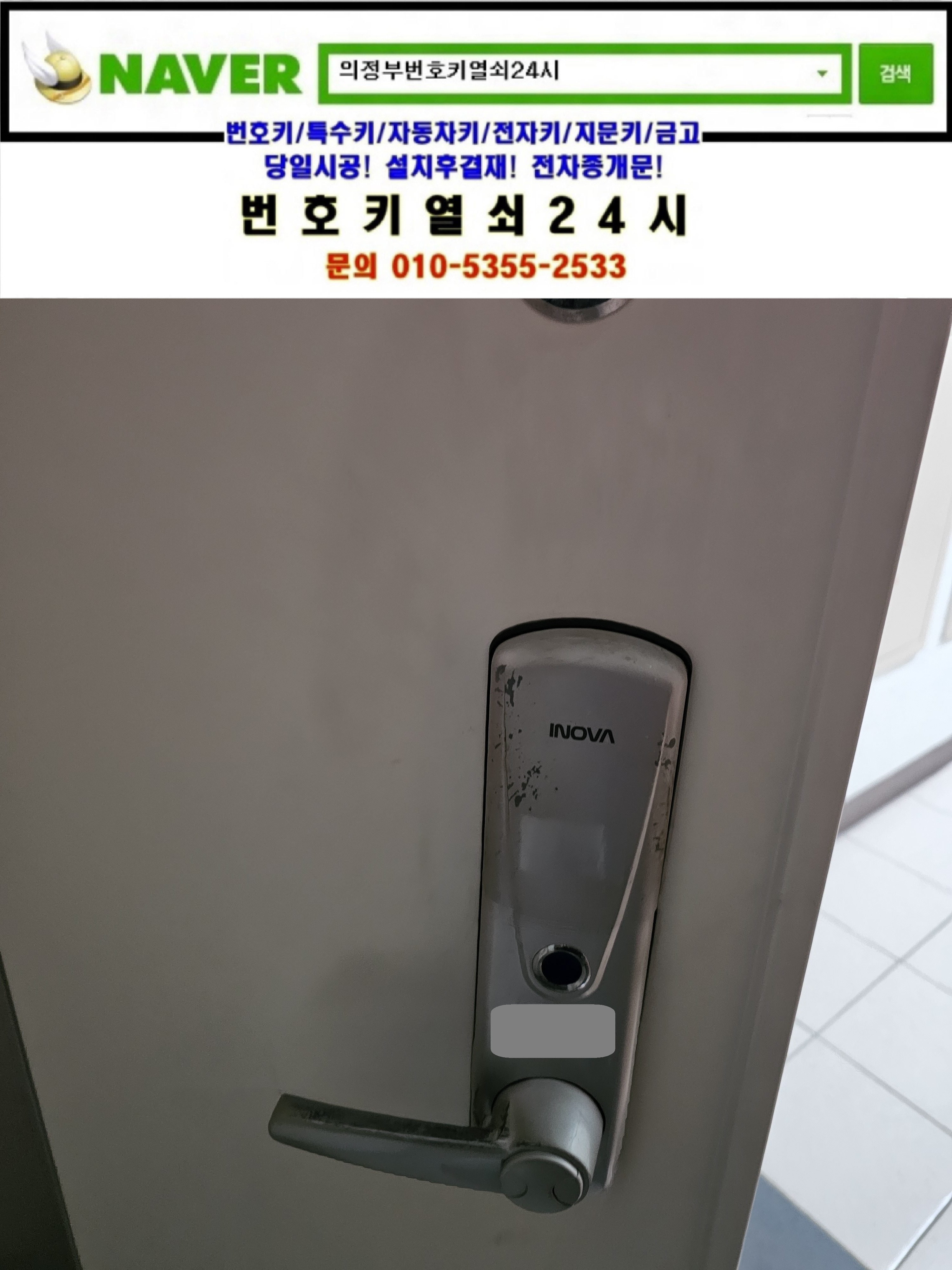 의정부시 가능동열쇠(녹양로62번길 12) 힐스테이트아파트 이노바주키도어락고장나 레바주키도어락 m5900s는 번호키열쇠24시가(tel:010-5355-2533) 설치하고 왔습니다.