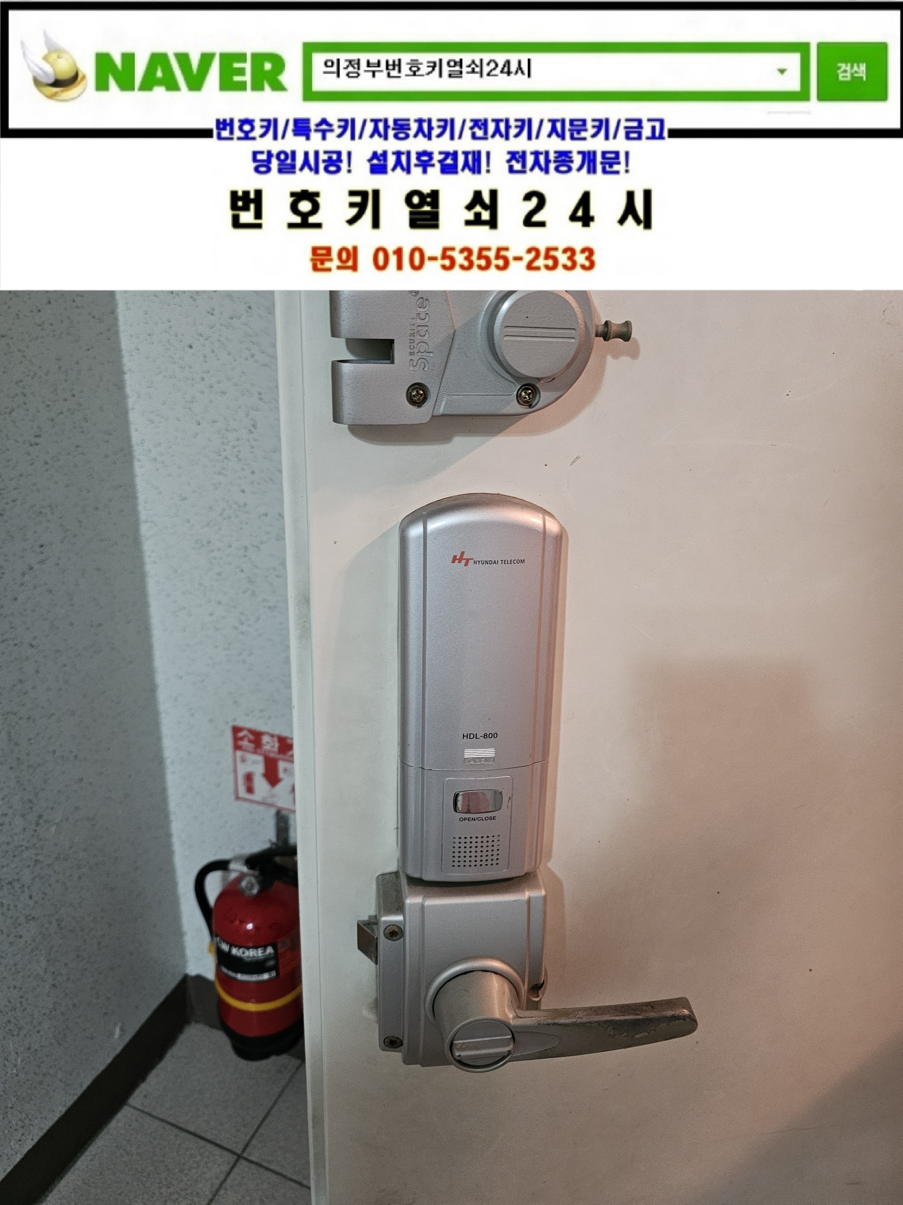 현장으로간곳은 의정부시 가능동열쇠(녹양로62번길12) 힐스테이트아파트입니다. 고객님댁의 현대 hdl-800 이노바주키도어락이 고장이나서 설치를 하신다고 기존도어락을 탈거한뒤 추가타공과 작업상황등을 설명드리고 보강판을 덧대서 설치해드리고 정상작동확인과 사용시 주의사항과 설명드리고 철수합니다.tel:010-5355-2533