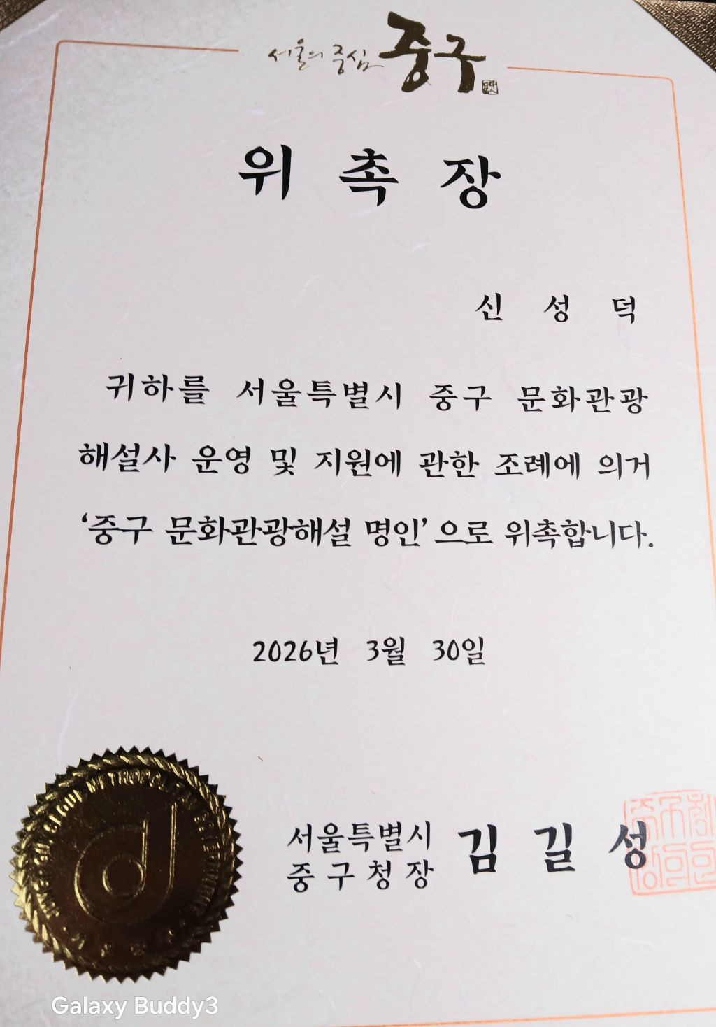 문화관광해설 명인으로 위촉 받았습니다.